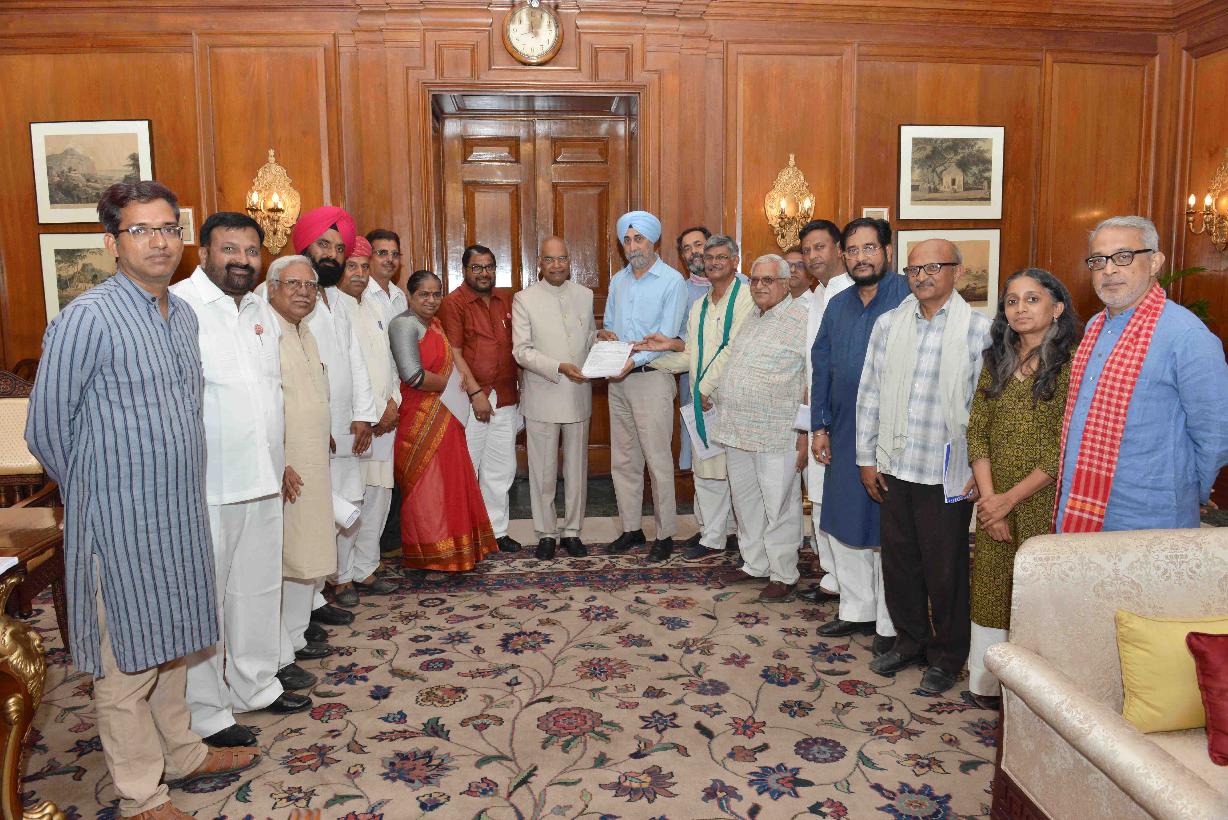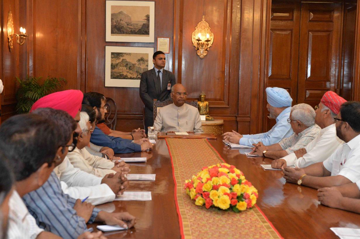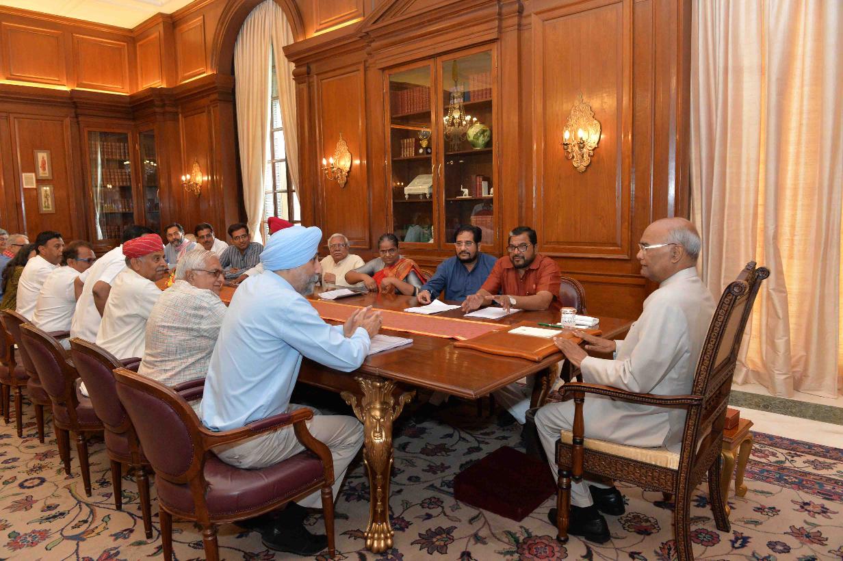 | Caption: | A delegation of All India Kisan Sangharsh Co-ordination Committee led by Shri Raju Shetti, MP (LS) and Shri K.K. Ragesh, MP (RS) meeting with the President of India, Shri Ram Nath Kovind, at Rashtrapati Bhavan on May 28, 2018. |