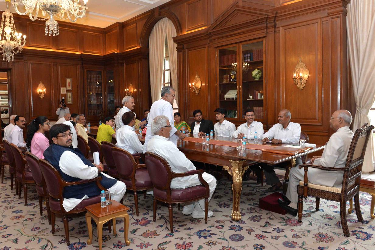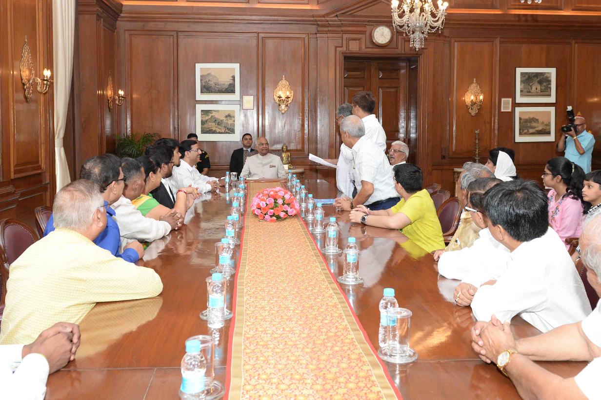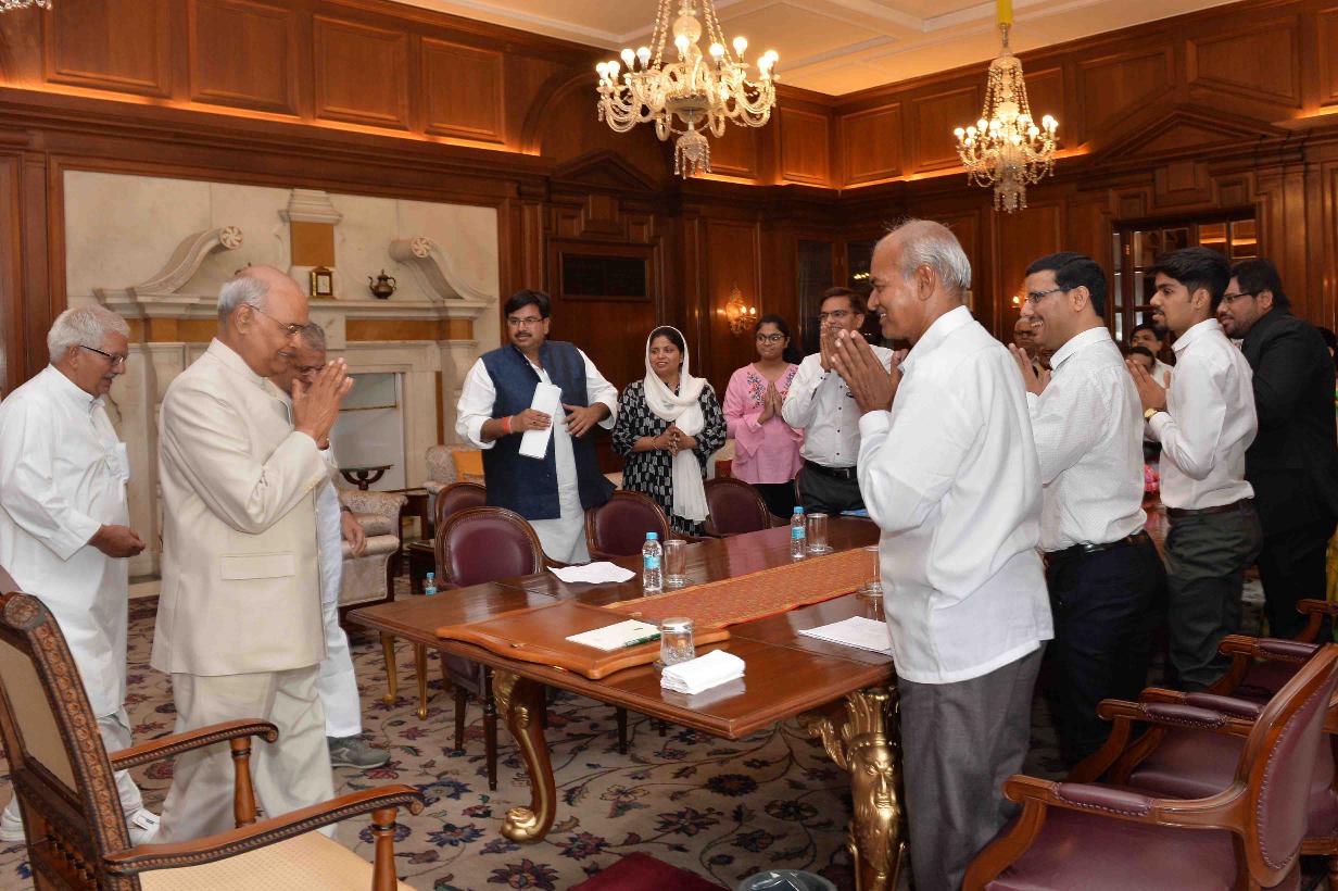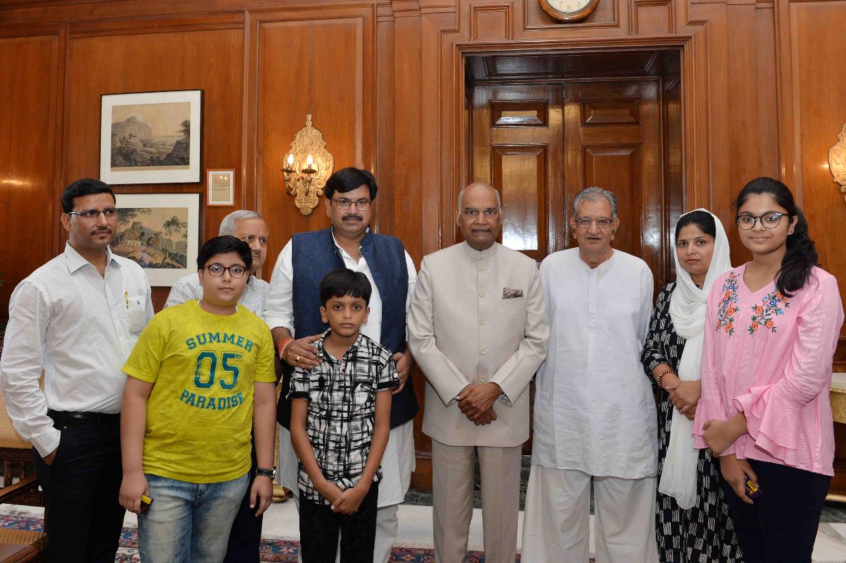 | Caption: | Shri Har Kishore Verma from Kanpur with others meeting with the President of India, Shri Ram Nath Kovind, at Rashtrapati Bhavan on May 31, 2018. |