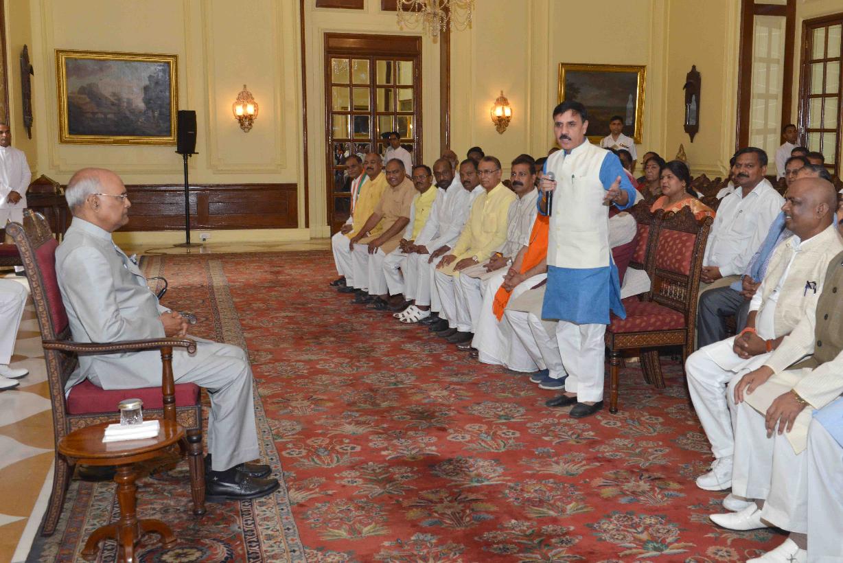 | Caption: | A delegation from BJP Scheduled Caste Morcha, led by Shri Vinod Sonkar, MP (LS) calling on the President of India, Shri Ram Nath Kovind, at Rashtrapati Bhavan on May 18, 2018. |