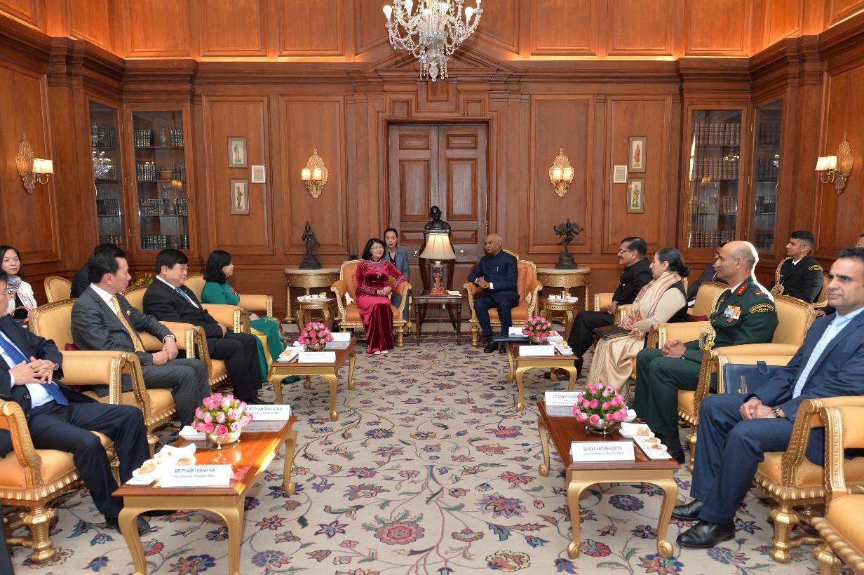 | Caption: | The Vice President of the Socialist Republic of Vietnam, H.E. Mrs. Dang Thi Ngoc Thinh calling on the President of India, Shri Ram Nath Kovind, at Rashtrapati Bhavan on February 13, 2020. |