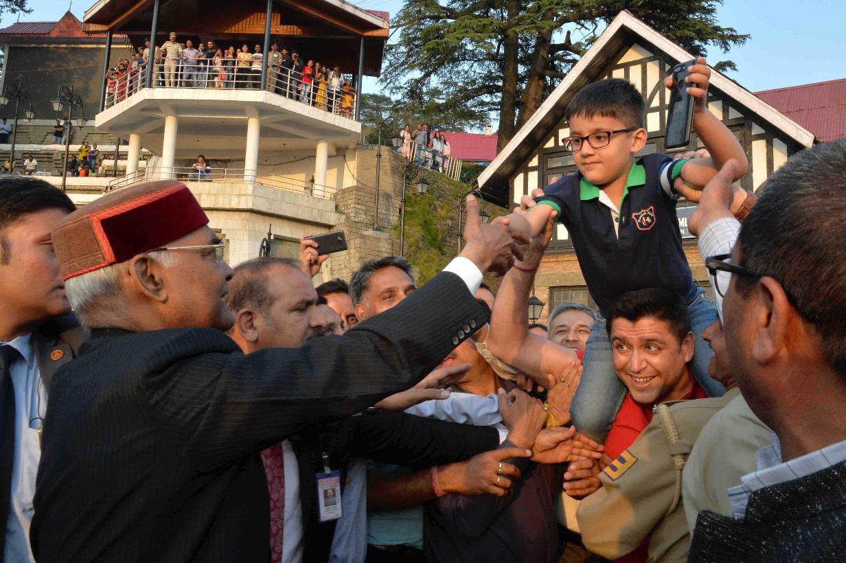 | Caption: | The President of India, Shri Ram Nath Kovind walking down the iconic Mall Road and meeting with the local residents and tourists, in Shimla, Himachal Pradesh on May 22, 2018. |
