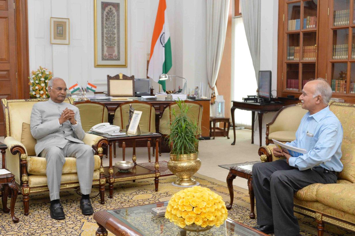 | Caption: | Prof. Ram Shanker Dubey from Dept. of Biochemistry, Institute of Science, Banaras Hindu University, Varanasi meeting with the President of India, Shri Ram Nath Kovind, at Rashtrapati Bhavan on May 18, 2018. |