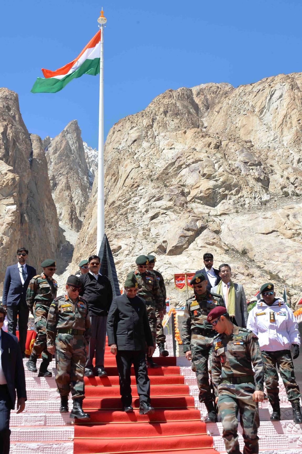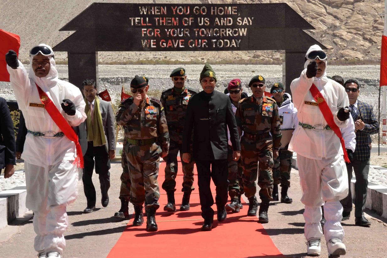 | Caption: | The President of India, Shri Ram Nath Kovind laying wreath at Siachen War Memorial during his visit to Siachen Base Camp on May 10, 2018. |