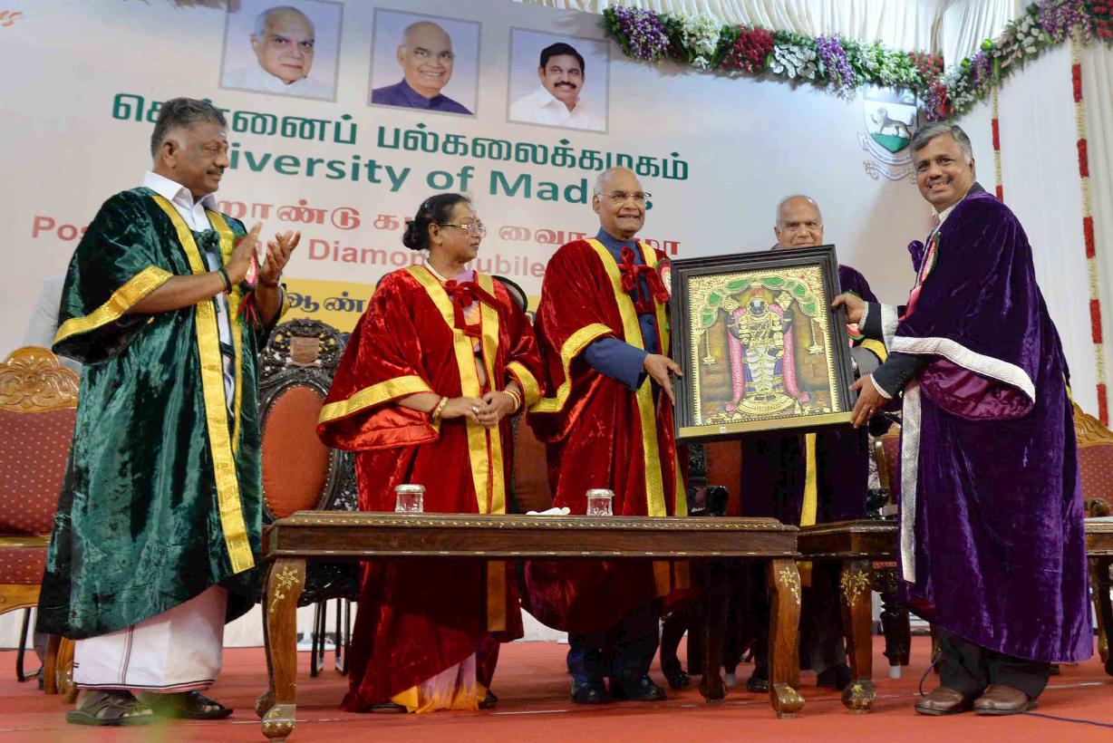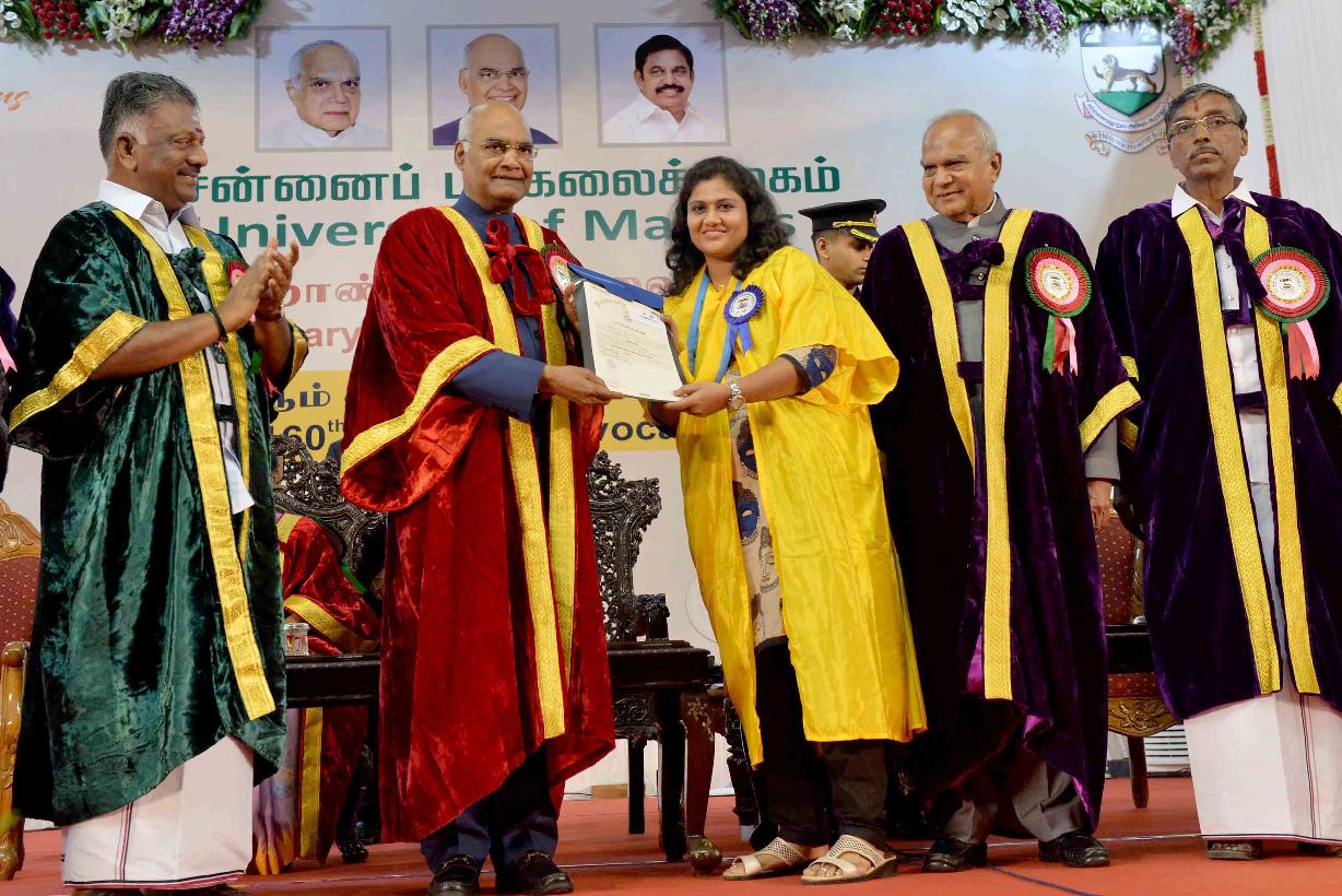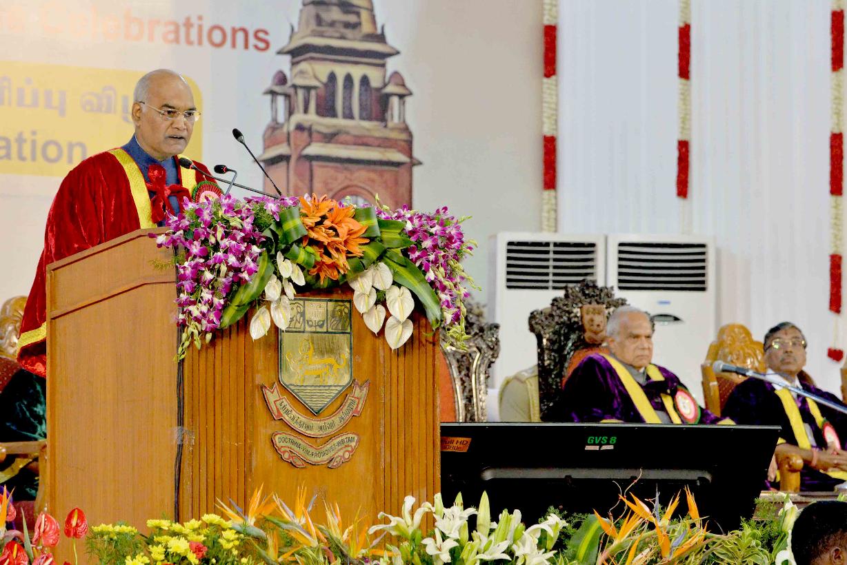 | Caption: | The President of India, Shri Ram Nath Kovind addressing the Post-Centenary Diamond Jubilee (160th) Convocation of University of Madras and presenting degree and medal to the students, at Chennai, in Tamil Nadu on May 05, 2018. |