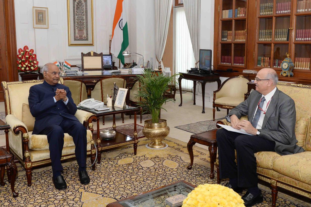 | Caption: | The Foreign Secretary, Shri Vijay Gokhale meeting with the President of India, Shri Ram Nath Kovind, at Rashtrapati Bhavan on May 08, 2018. |