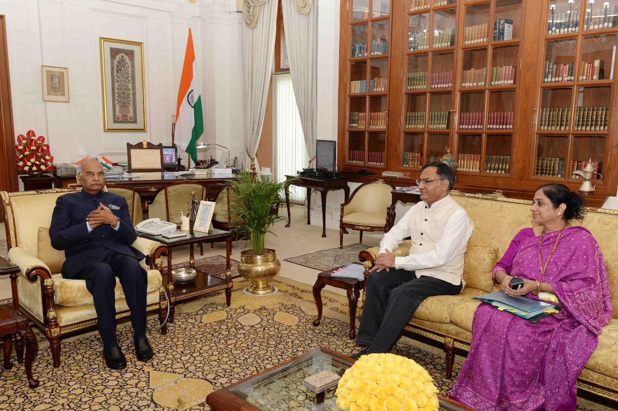 | Caption: | The Secretary, Technology Development Board, Dr. Bindu Dey and the Secretary, Department of Science and Technology, Dr. Ashutosh Sharma meeting with the President of India, Shri Ram Nath Kovind, at Rashtrapati Bhavan on May 08, 2018. |