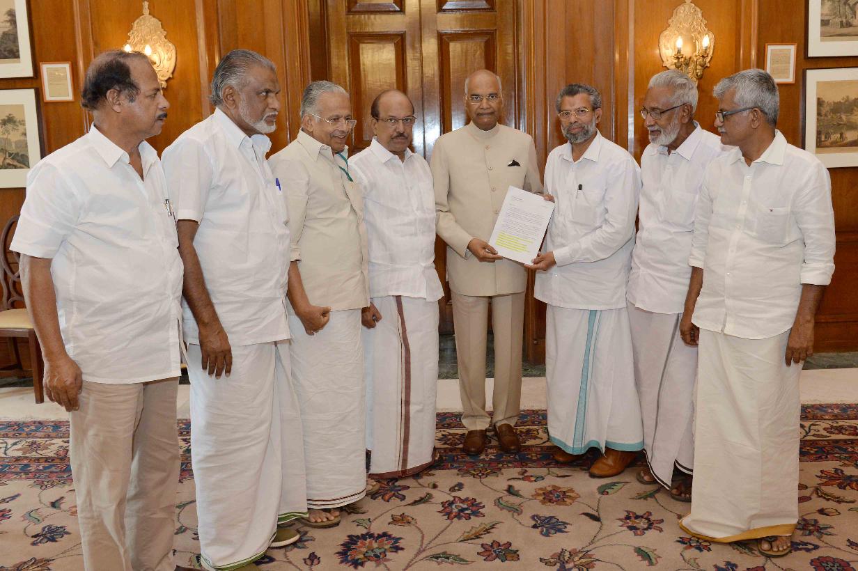 | Caption: | Shri P.K. Kunhalikutty, MP (LS) along with Shri E.T. Mohammed Basheer, MP (LS), Shri Kurkoli Moideen, President and others from Swantantra Karshaka Sangam, Kerala meeting with the President of India, Shri Ram Nath Kovind, at Rashtrapati Bhavan on May 09, 2018. |