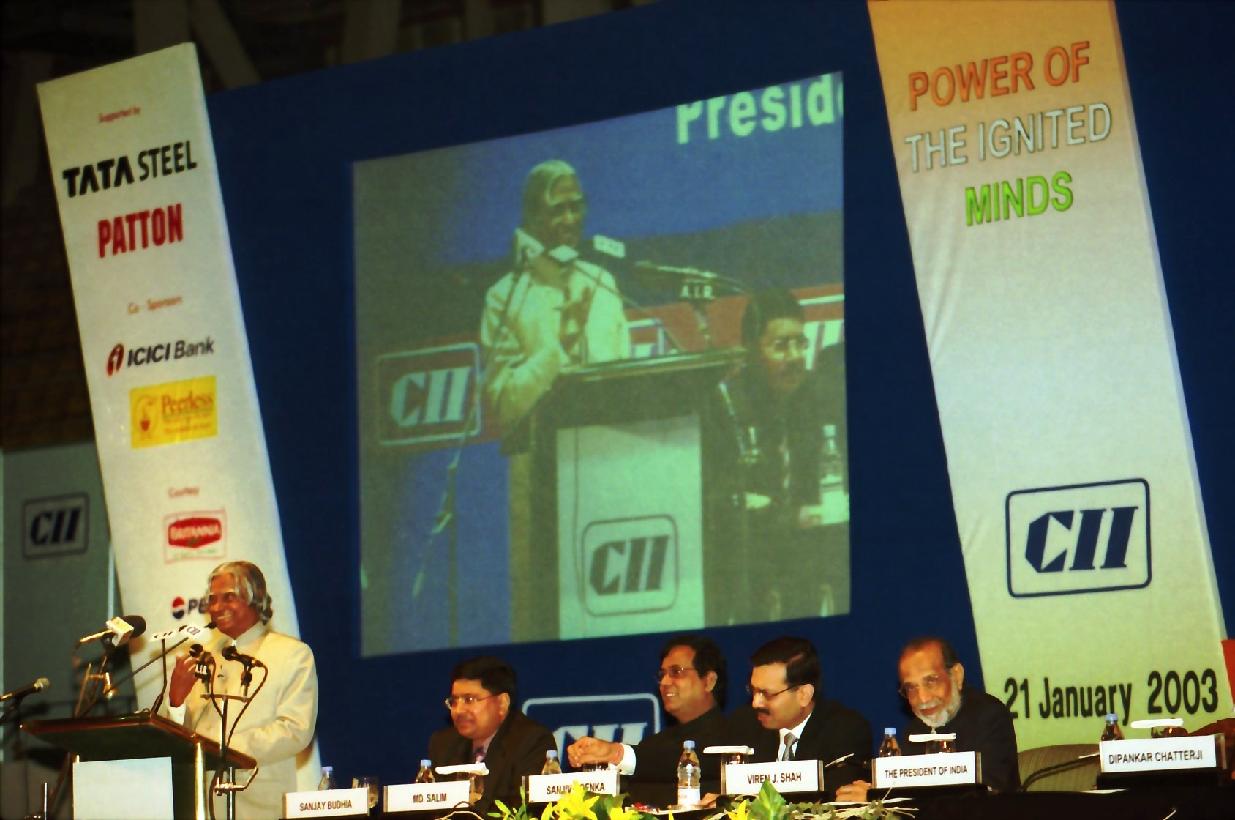 | Caption: | The President of India, Dr A P J Abdul Kalam giving a Lecture on Vision for India at Kolkata in West Bengal on Jan 21, 2003 |