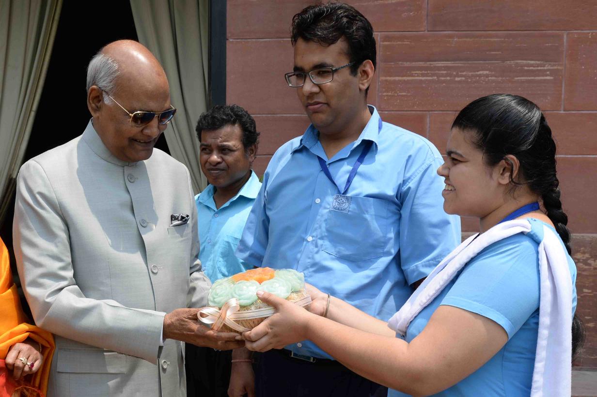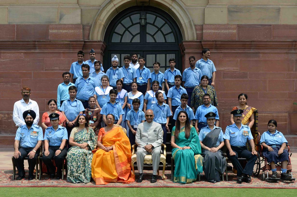 | Caption: | The students & staff/special volunteers of Umeed Vocation Training Centre, Subroto Park and officials of Air Force Wives Welfare Association (AFWWA) meeting with the President of India, Shri Ram Nath Kovind, at Rashtrapati Bhavan on May 11, 2018. |