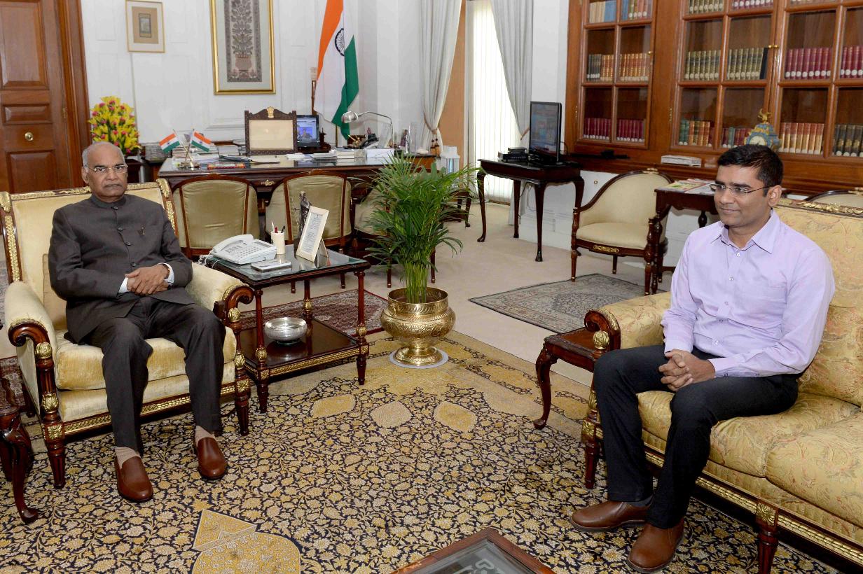 | Caption: | Shri Anand Kumar, former ADC to Governor of Bihar meeting with the President of India, Shri Ram Nath Kovind, at Rashtrapati Bhavan on May 12, 2018. |
