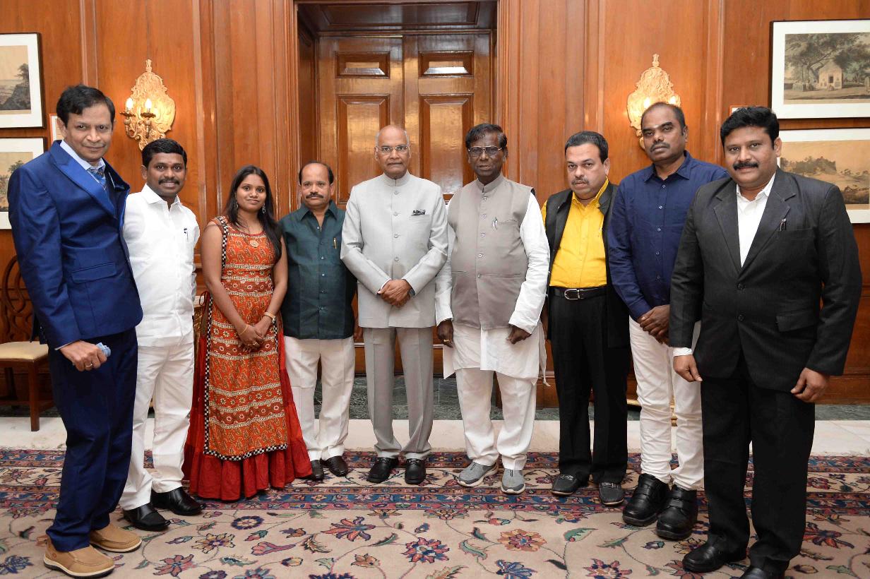 | Caption: | Shri Nandi Yellaiah, MP (LS) from Nagarkurnool, Telangana along with Dr. Naveen Balaji from Herbo Care and others meeting with the President of India, Shri Ram Nath Kovind, at Rashtrapati Bhavan on May 11, 2018. |