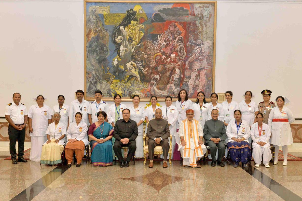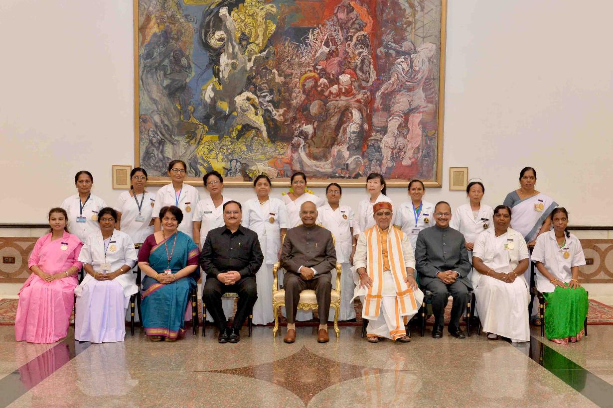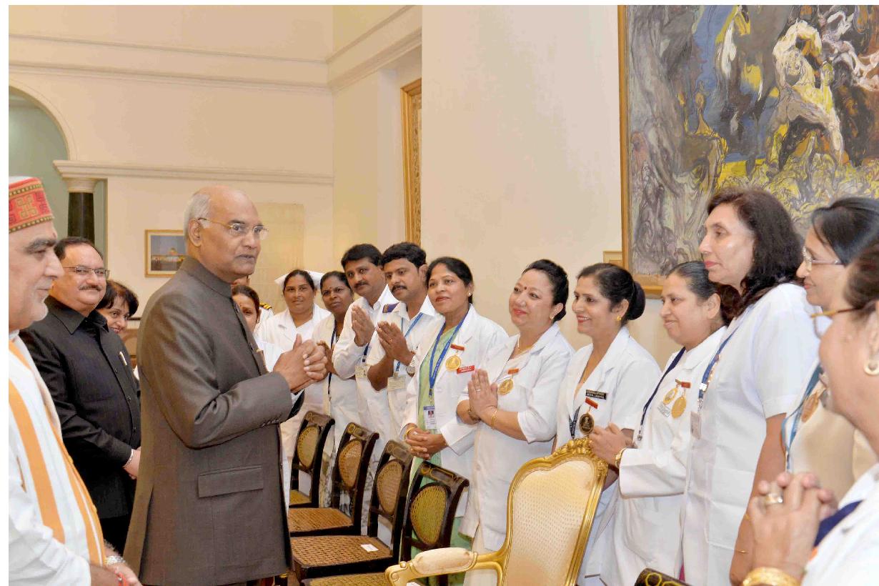 | Caption: | The President of India, Shri Ram Nath Kovind addressing the International Nurses Day Celebration and interacting with the nurses, at Rashtrapati Bhavan Cultural Centre on May 12, 2018. |