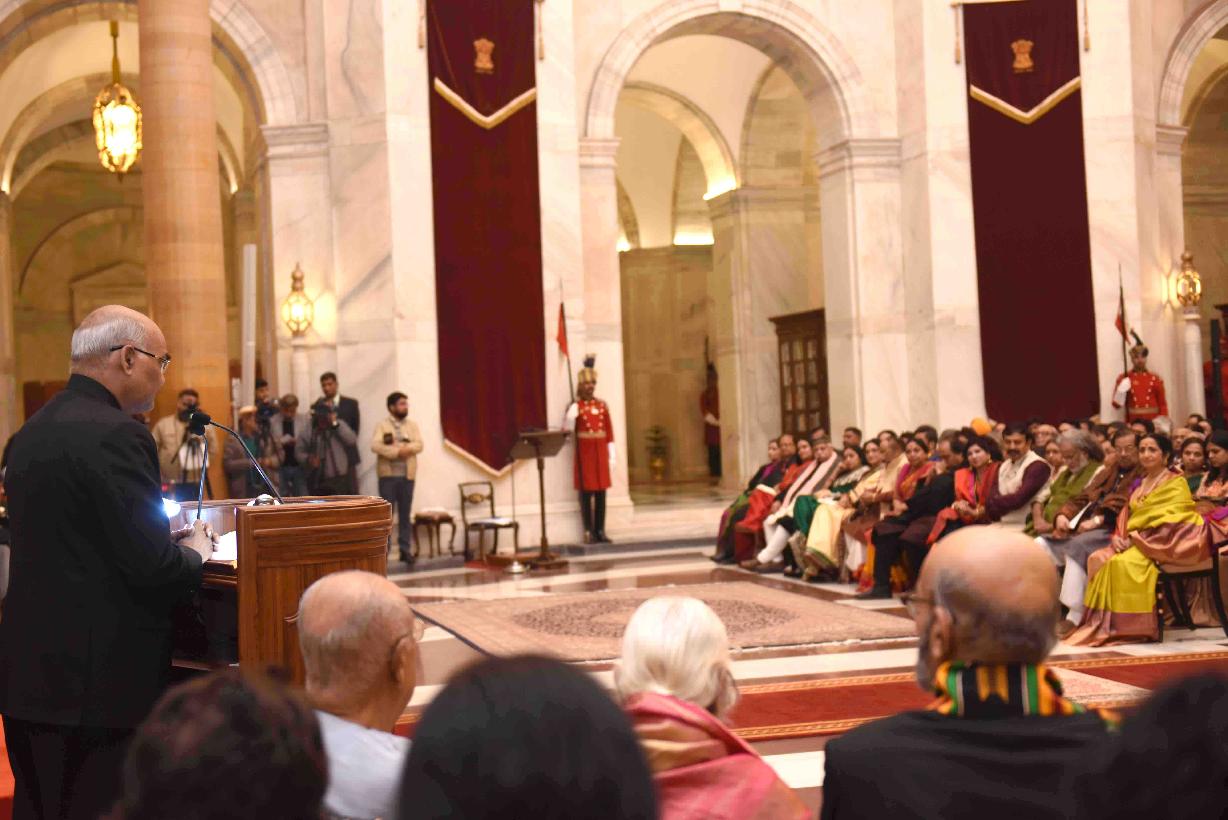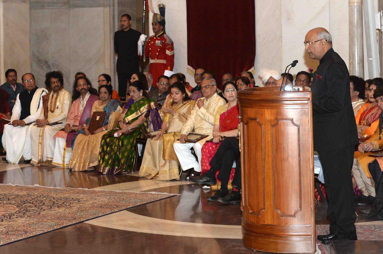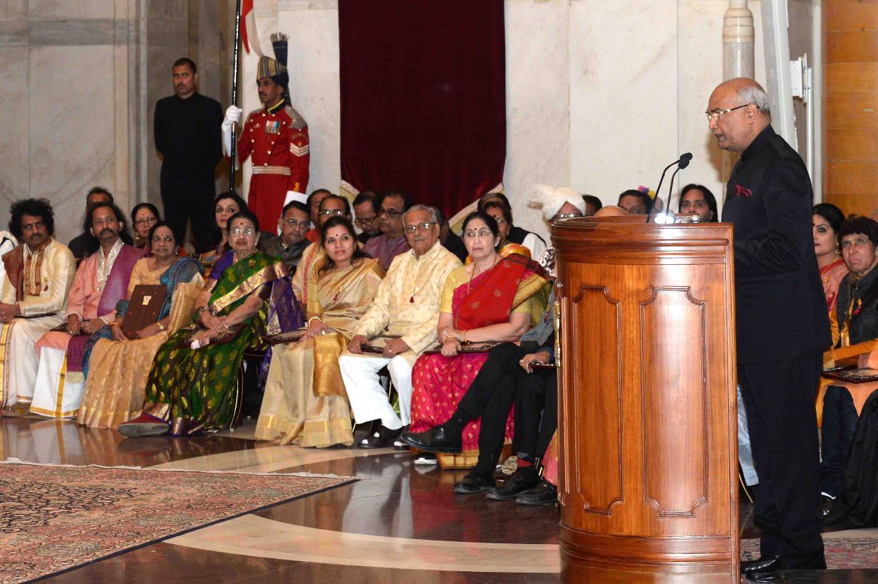 | Caption: | The President of India, Shri Ram Nath Kovind presenting the Sangeet Natak Akademi's Fellowship (Akademi Ratna) and Akademi Awards (Akademi Puraskar) - 2016, at Rashtrapati Bhavan on January 17, 2018. |