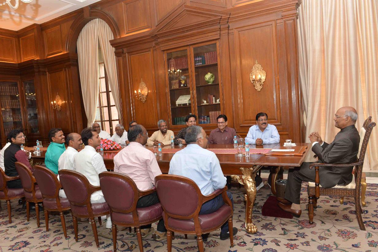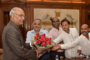 | Caption: | Shri Anand Kumar Verma from Kanpur with others meeting with the President of India, Shri Ram Nath Kovind, at Rashtrapati Bhavan on May 16, 2018. |