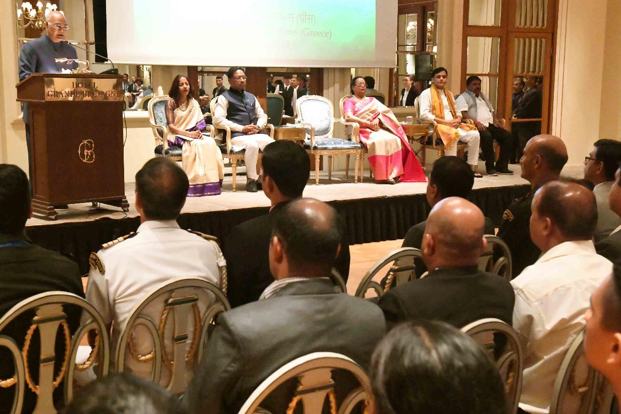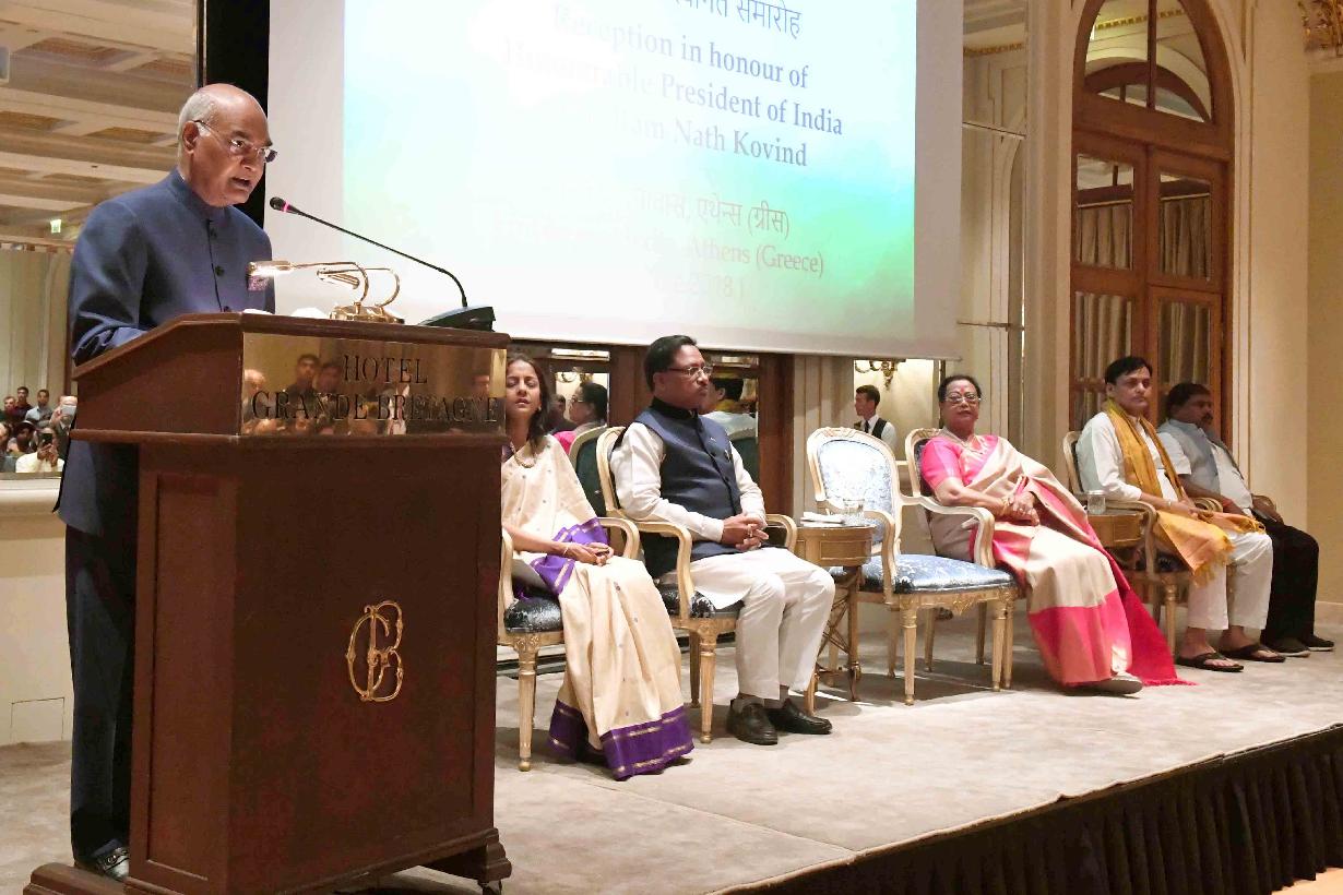 | Caption: | The President of India, Shri Ram Nath Kovind addressing at the Indian Community Reception hosted by the Ambassador of India to Greece, Ms. Samma Jain, at Athens, in Greece on June 17, 2018. |