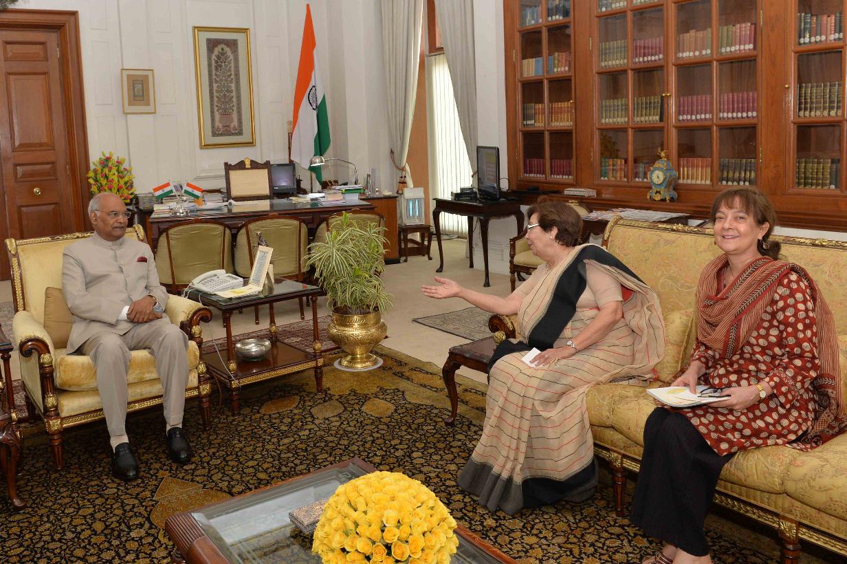 | Caption: | Smt. Zena Soli Sorabjee, Vice Chairman & Trustee and Ms. Nazneen Rowhani, Secretary General, National Spiritual Assembly of the Bahais of India meeting with the President of India, Shri Ram Nath Kovind, at Rashtrapati Bhavan on June 09, 2018. |