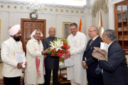 | Caption: | The Minister of State for Social Justice & Empowerment, Shri Vijay Sampla along with the National General Secretaries, Rashtriya Sikh Sangat, Shri Awinash Jaiswal & Shri Avtar Singh Shastri, the CMD Kent RO Systems Ltd., Dr. Mahesh Gupta and the Chairman Advisory Committee of Agro Chem Federation of India, Shri R.G. Agarwal meeting with the President of India, Shri Ram Nath Kovind, at Rashtrapati Bhavan on June 12, 2018. |