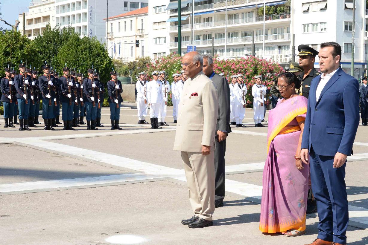 | Caption: | The President of India, Shri Ram Nath Kovind laying wreath at the monument of Unknown Soldier , at Athens, in Greece on June 18, 2018. |