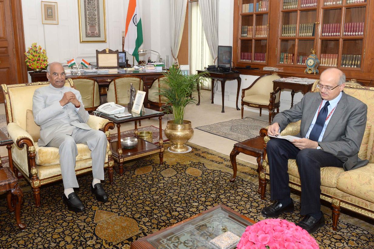 | Caption: | The Foreign Secretary, Shri Vijay Gokhale calling on the President of India, Shri Ram Nath Kovind, at Rashtrapati Bhavan on June 13, 2018. |