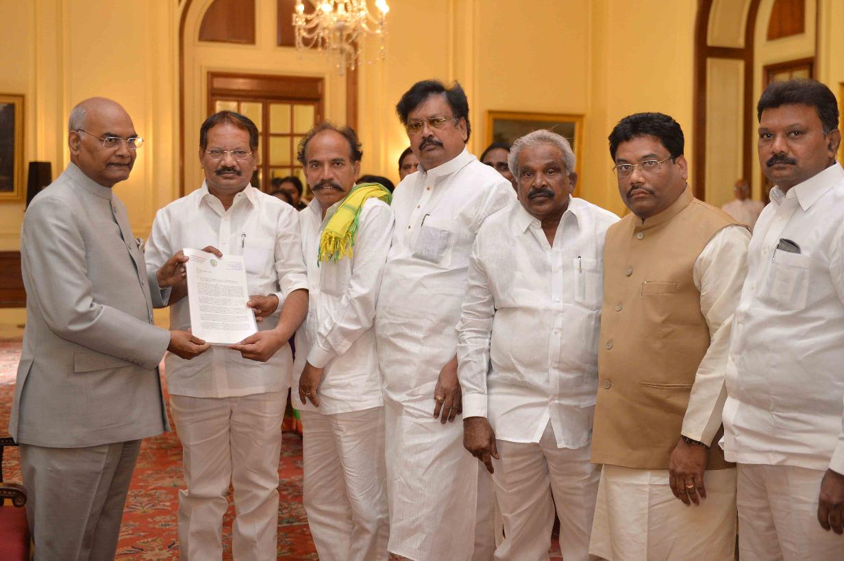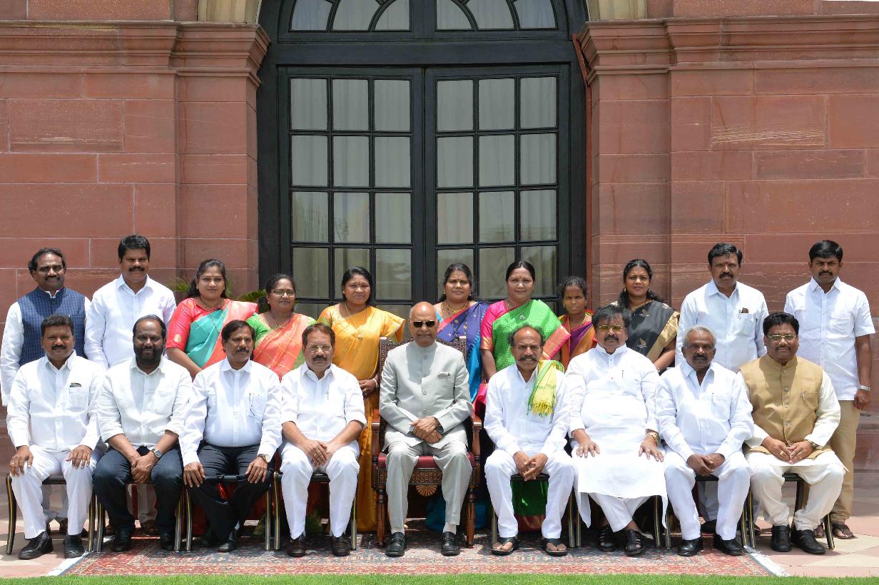 | Caption: | A delegation of elected representatives (Ministers, MPs, MLCs and MLAs) from the Scheduled Castes and Scheduled Tribes from Andhra Pradesh meeting with the President of India, Shri Ram Nath Kovind, at Rashtrapati Bhavan on June 11, 2018. |