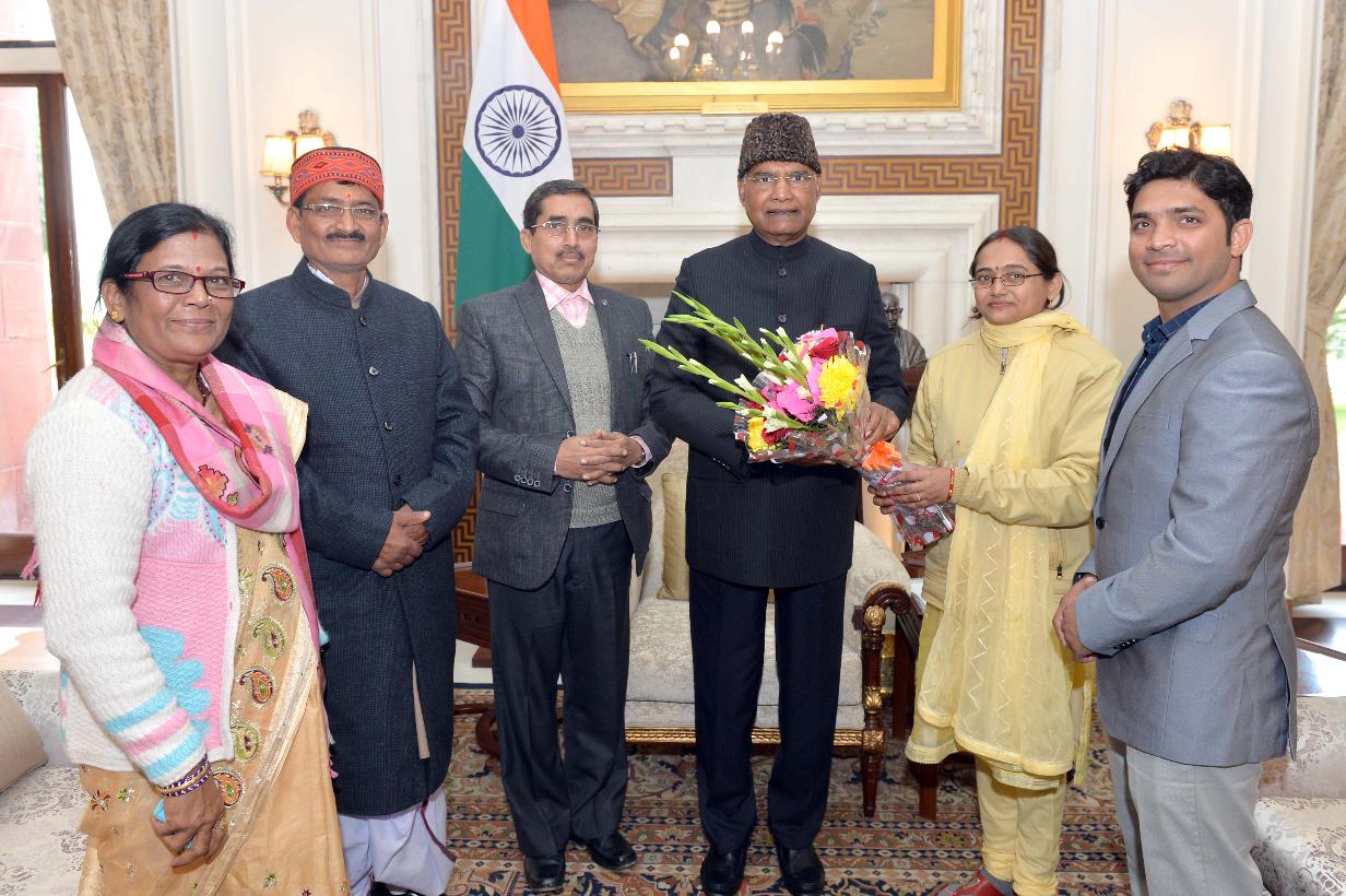 | Caption: | Shri Sunil Kumar Pathak, Public Relations Officer to Governor of Bihar along with his family members meeting with the President of India, Shri Ram Nath Kovind, at Rashtrapati Bhavan on January 14, 2020. |