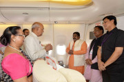 | Caption: | The President of India, Shri Ram Nath Kovind interacting with official delegation, Shri Vishnu Deo Sai, Minister of State for Steel, Shri Dinesh Kashyap, MP and Shri Nityanand Rai, MP, onboard on his way to Greece on June 16, 2018. |