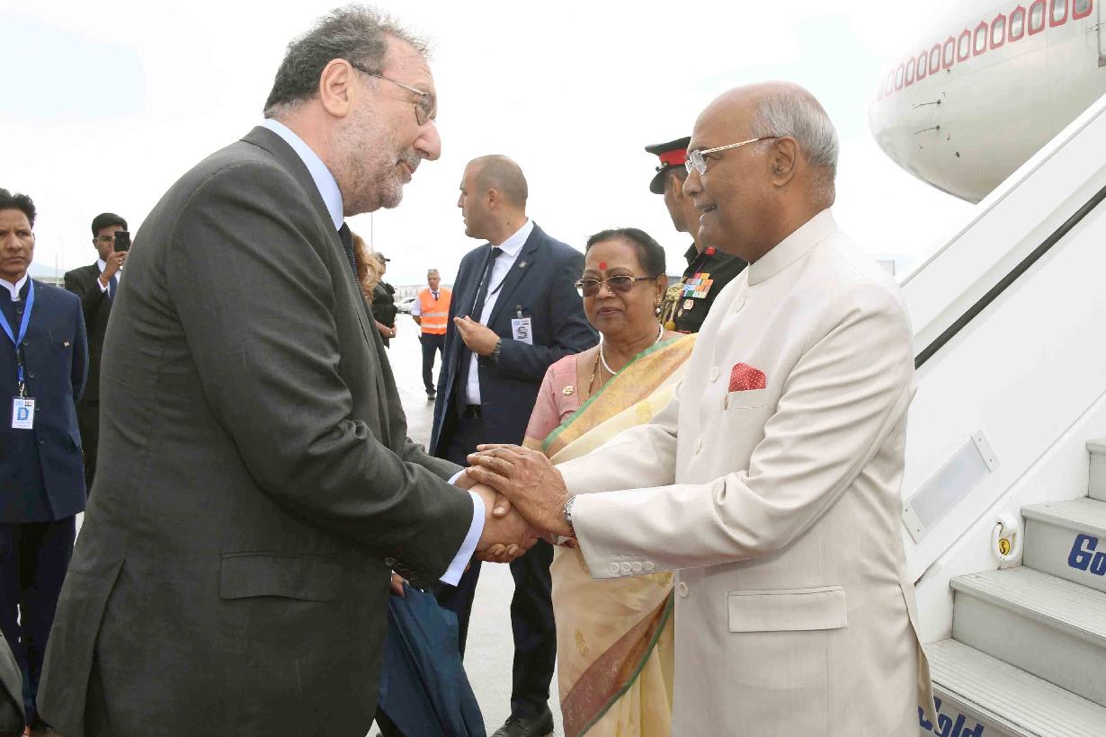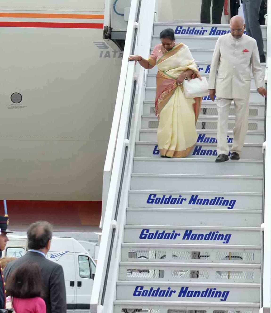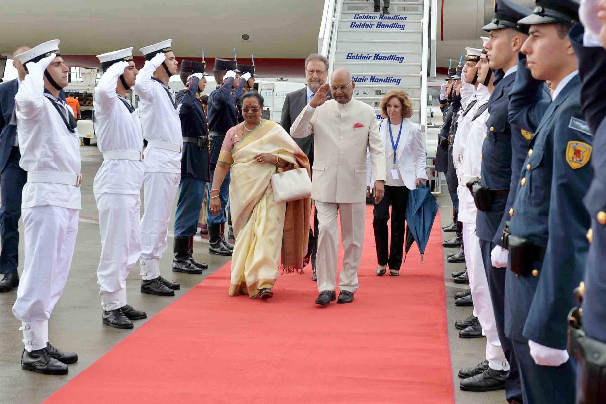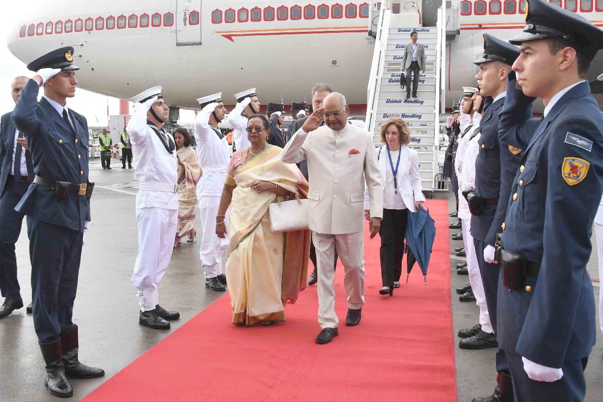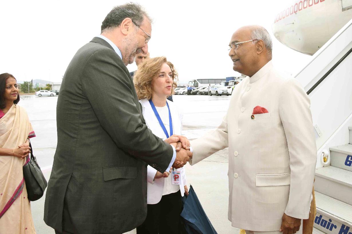 | Caption: | The President of India, Shri Ram Nath Kovind being received by the Dy. Minister of Economy and Development of Greece, H.E. Mr. Stergios Pitsiorlas on his arrival, at Athens International Airport, in Greece on June 16, 2018. |