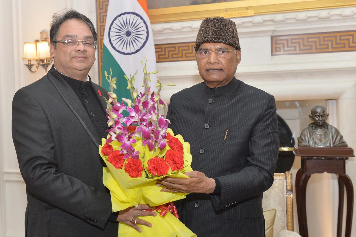 | Caption: | Dr. Jagannath Patnaik, Vice Chancellor, ICFAI University, Sikkim meeting with the President of India, Shri Ram Nath Kovind, at Rashtrapati Bhavan on January 14, 2020. |
