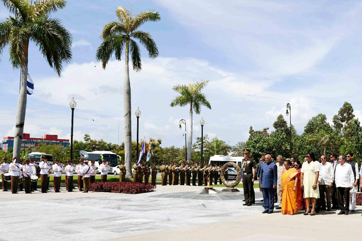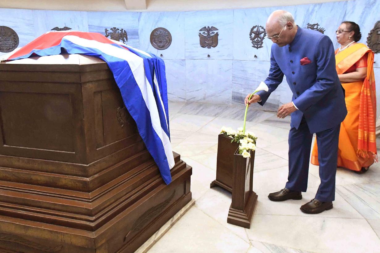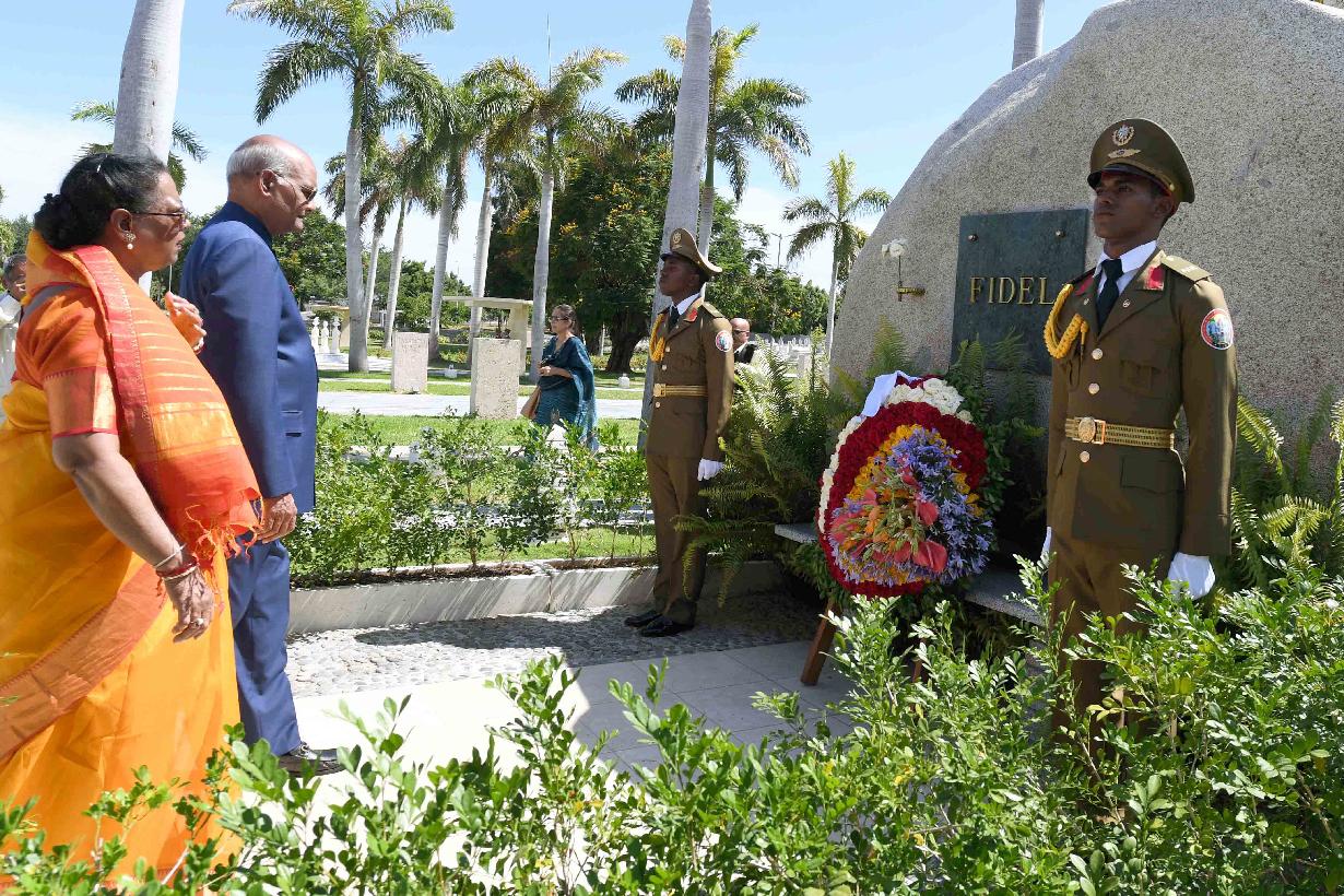 | Caption: | The President of India, Shri Ram Nath Kovind and the First Lady of India, Smt. Savita Kovind paying respect at the memorial of Fidel Castro, Carlos Manuel de Cespedes and the memorial of Mariana Grajales by offering flowers, at Santa Ifigenia Cemetery, in Santiago de Cuba on June 21, 2018. |