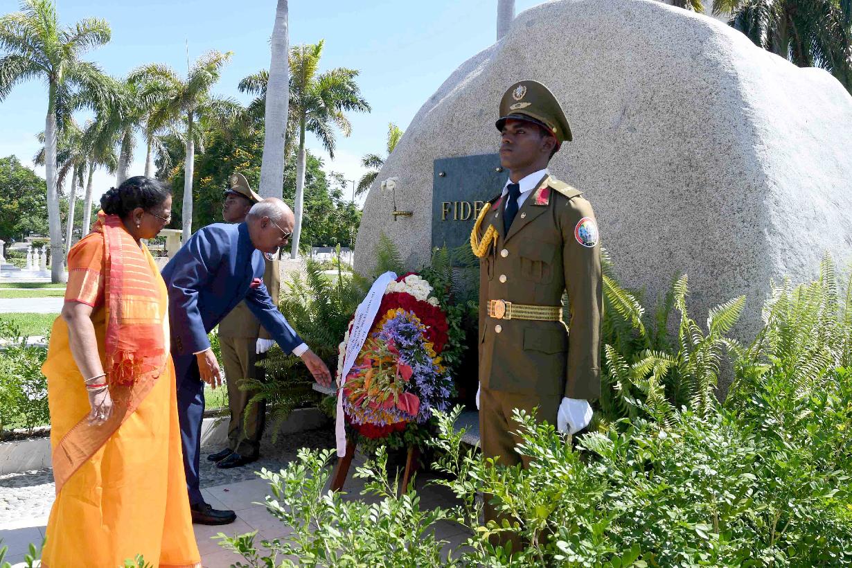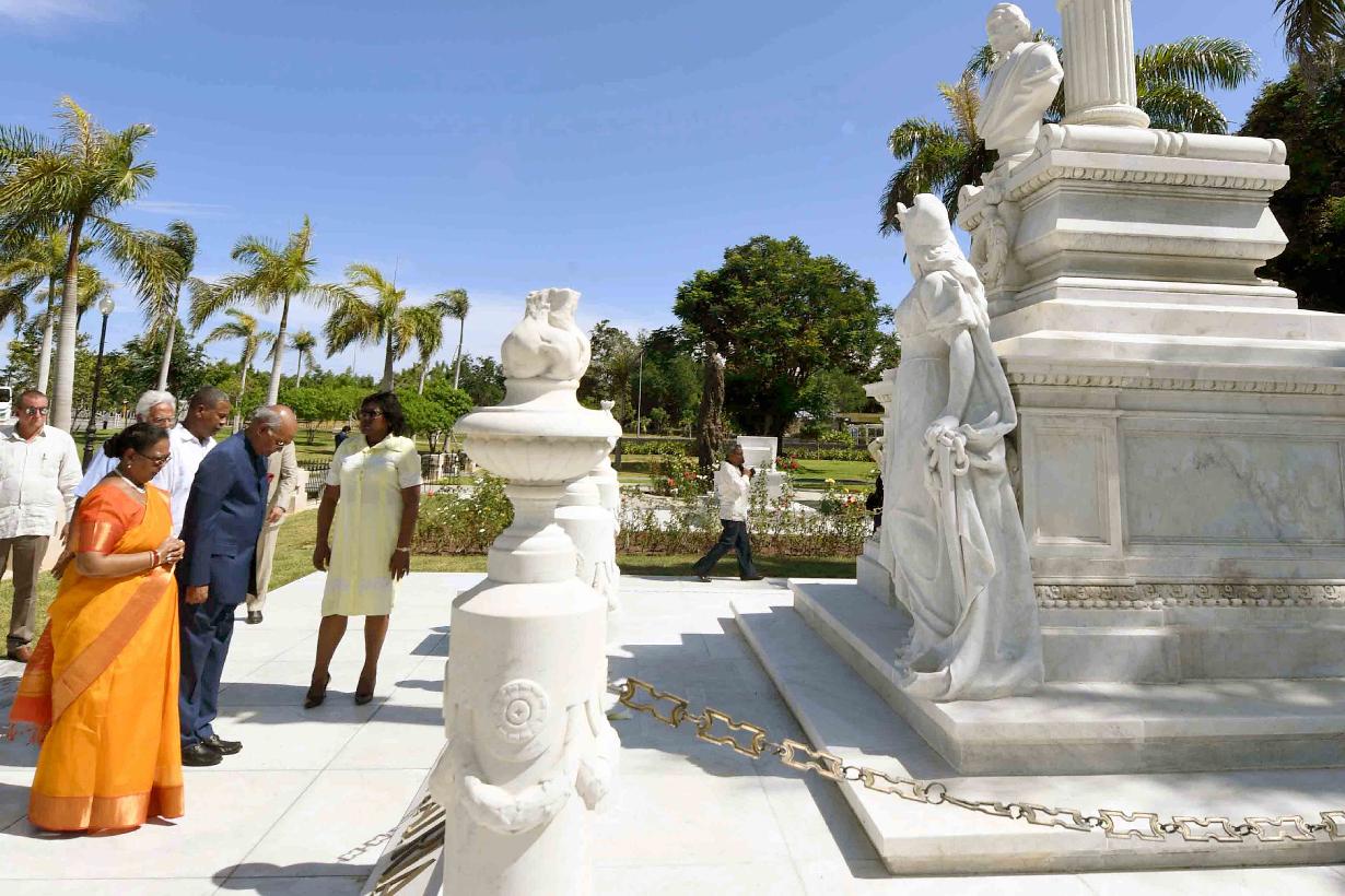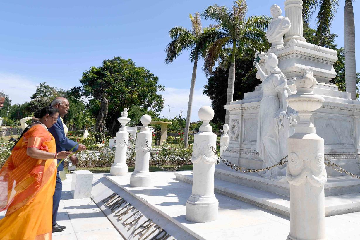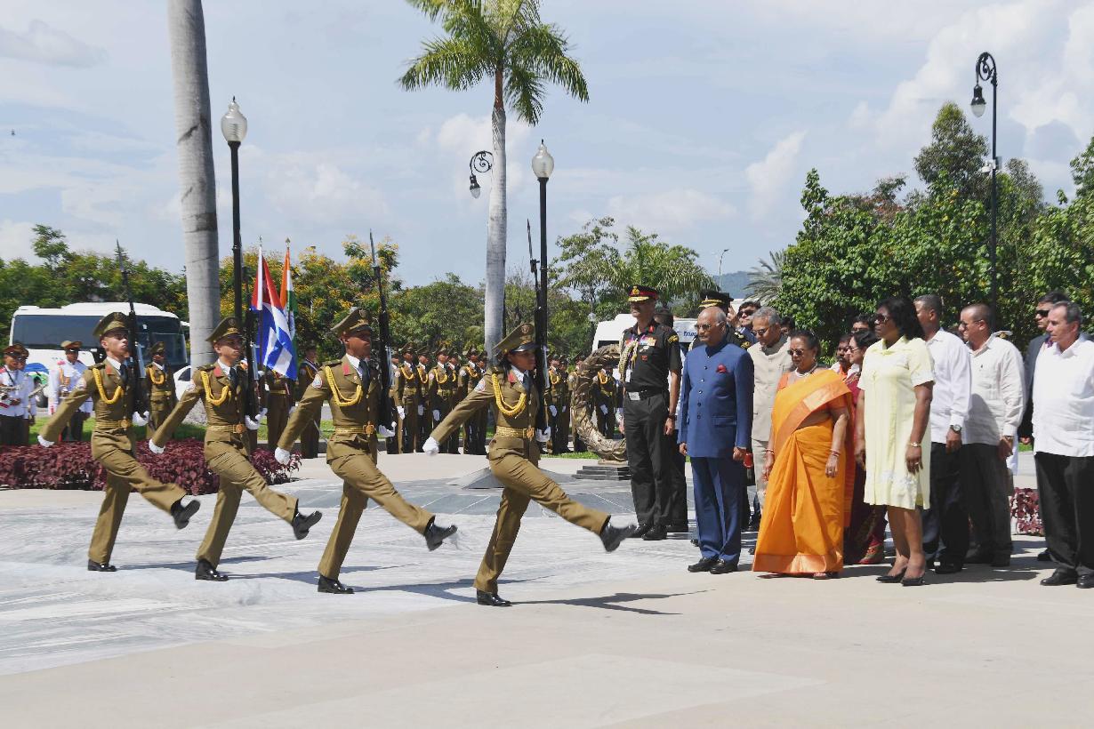 | Caption: | The President of India, Shri Ram Nath Kovind and the First Lady of India, Smt. Savita Kovind paying respect at the memorial of Fidel Castro, Carlos Manuel de Cespedes and the memorial of Mariana Grajales by offering flowers, at Santa Ifigenia Cemetery, in Santiago de Cuba on June 21, 2018. |
