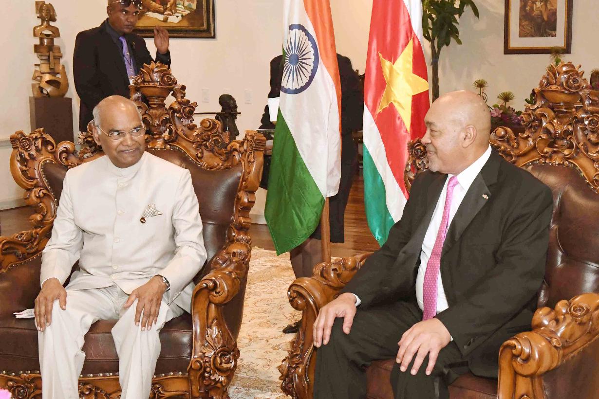| Caption: | The President of India, Shri Ram Nath Kovind calling on the President of the Republic of Suriname, H.E. Mr. Desire Delano Bouterse, at Presidential Palace, in Suriname on June 20, 2018. |