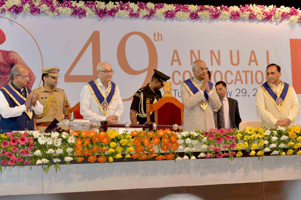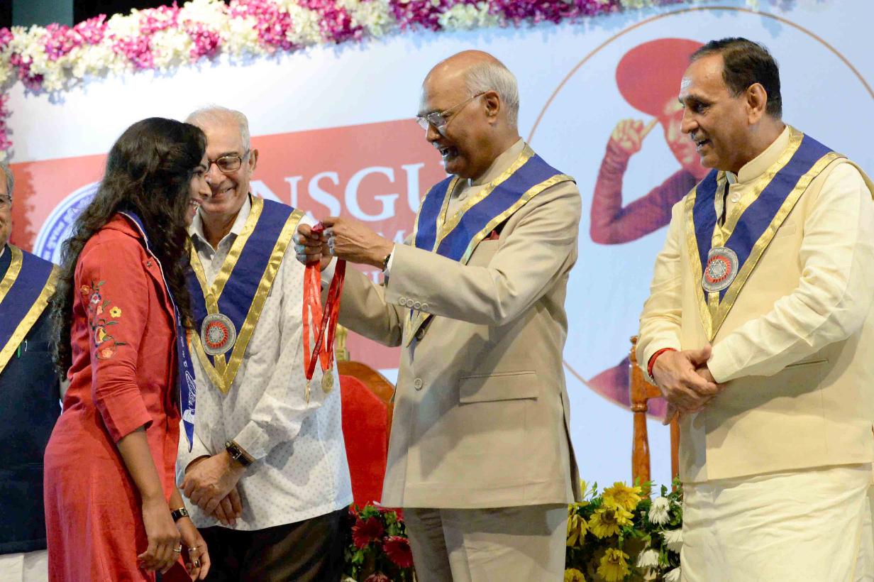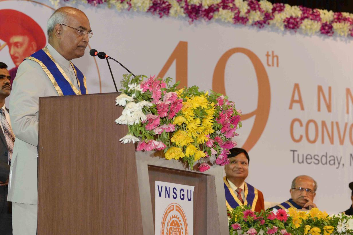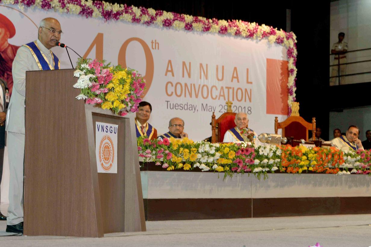 | Caption: | The President of India, Shri Ram Nath Kovind addressing the 49th Annual Convocation of Veer Narmad South Gujarat University (VNSGU) and presenting the Gold Medal and Degree to the students, at Surat, in Gujarat on May 29, 2018. |