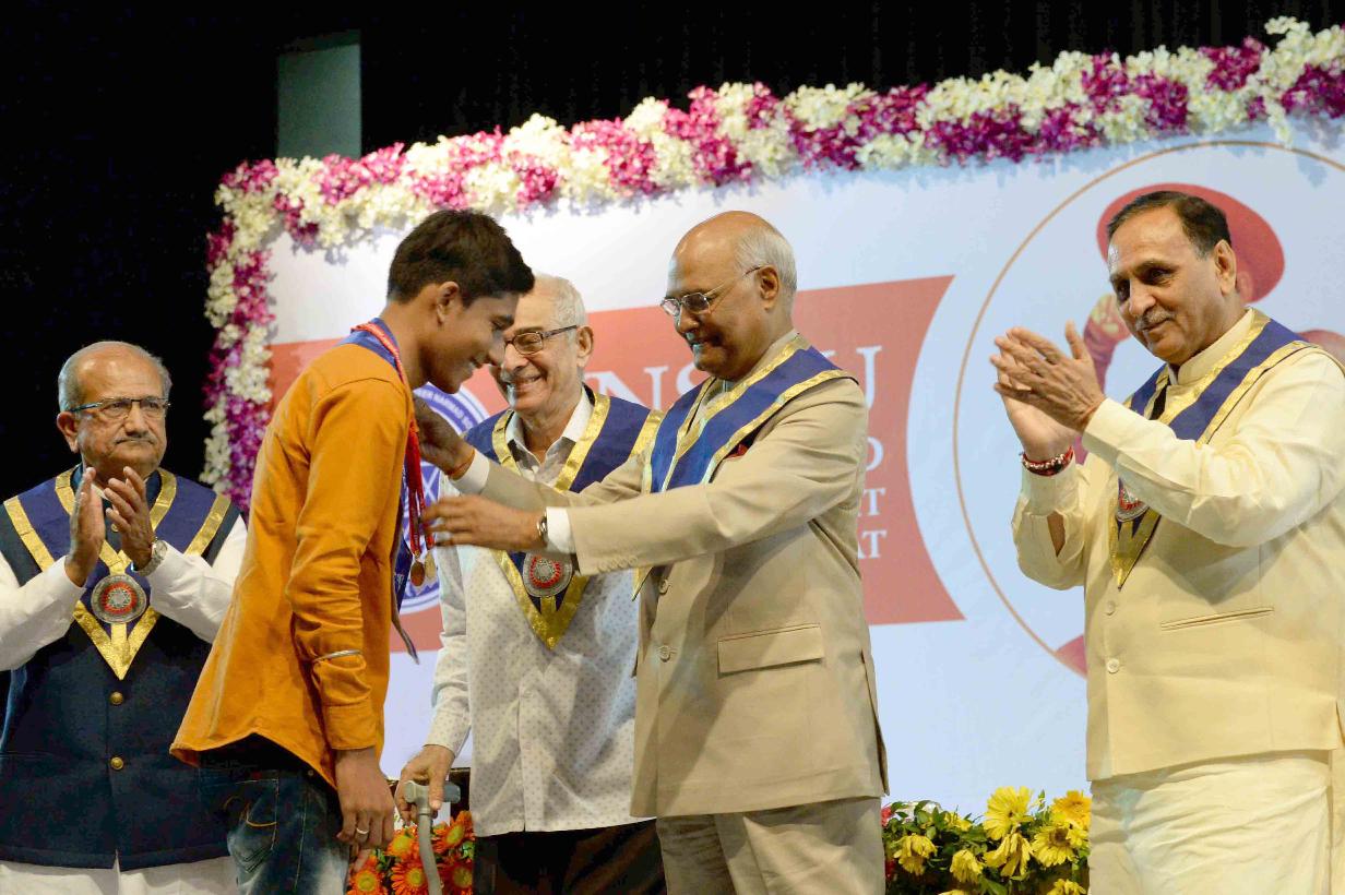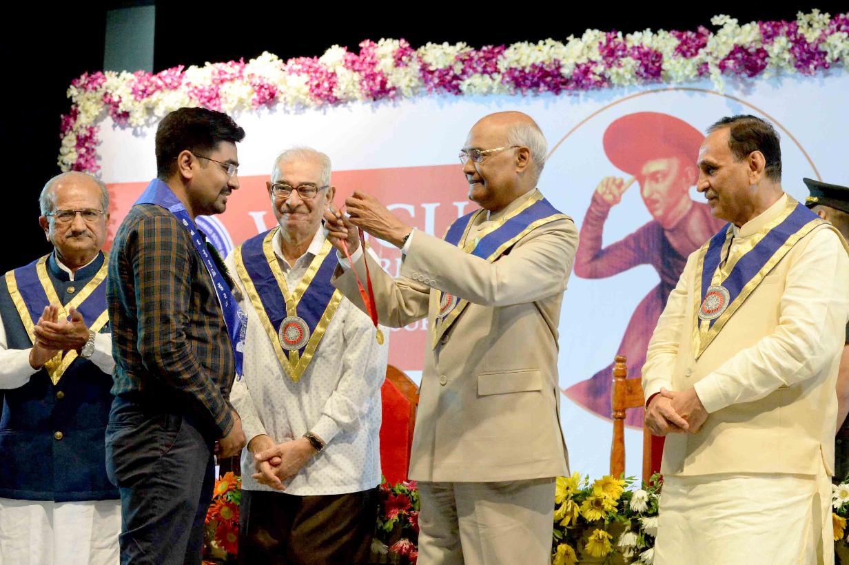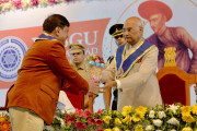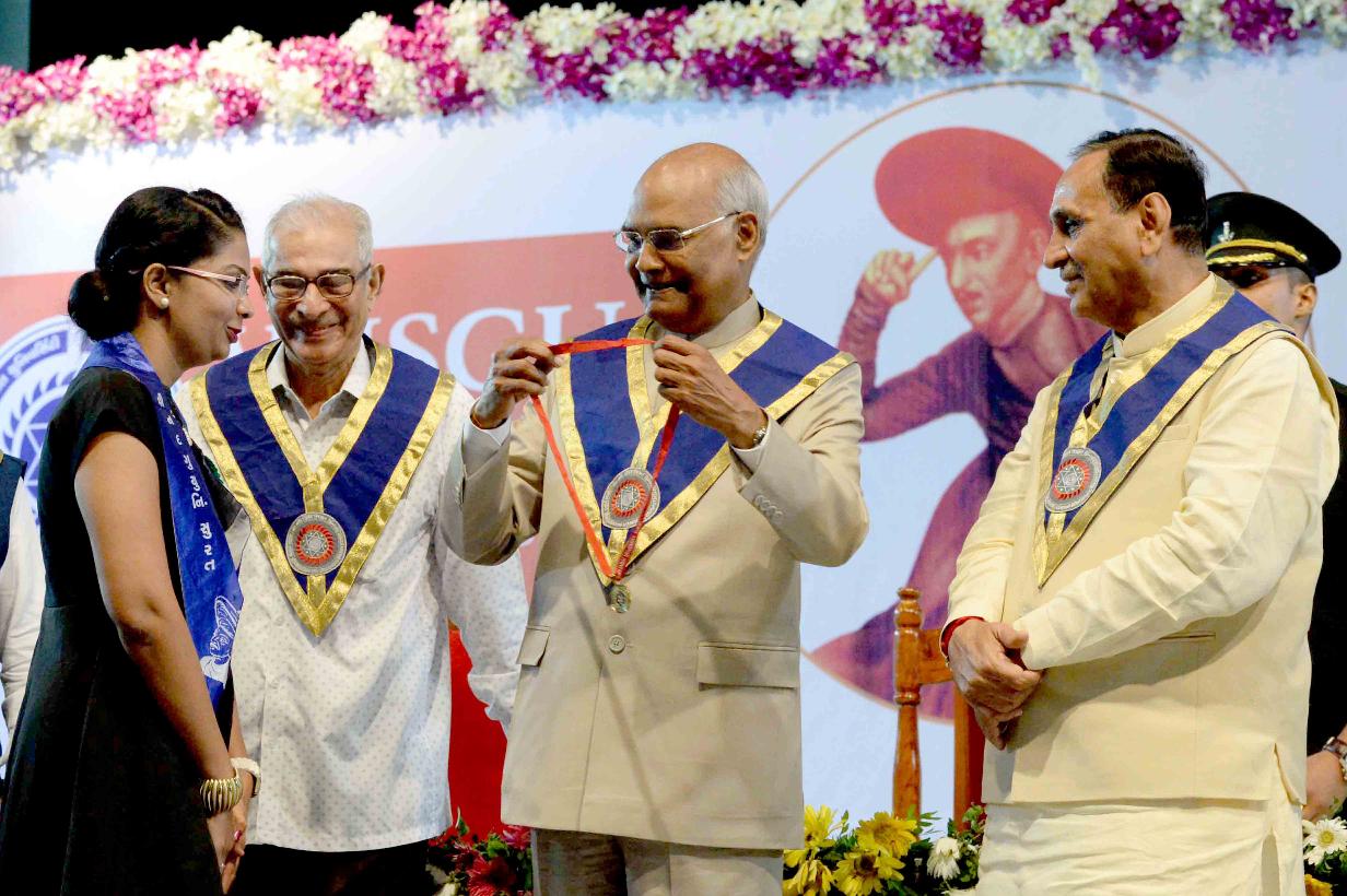 | Caption: | The President of India, Shri Ram Nath Kovind addressing the 49th Annual Convocation of Veer Narmad South Gujarat University (VNSGU) and presenting the Gold Medal and Degree to the students, at Surat, in Gujarat on May 29, 2018. |