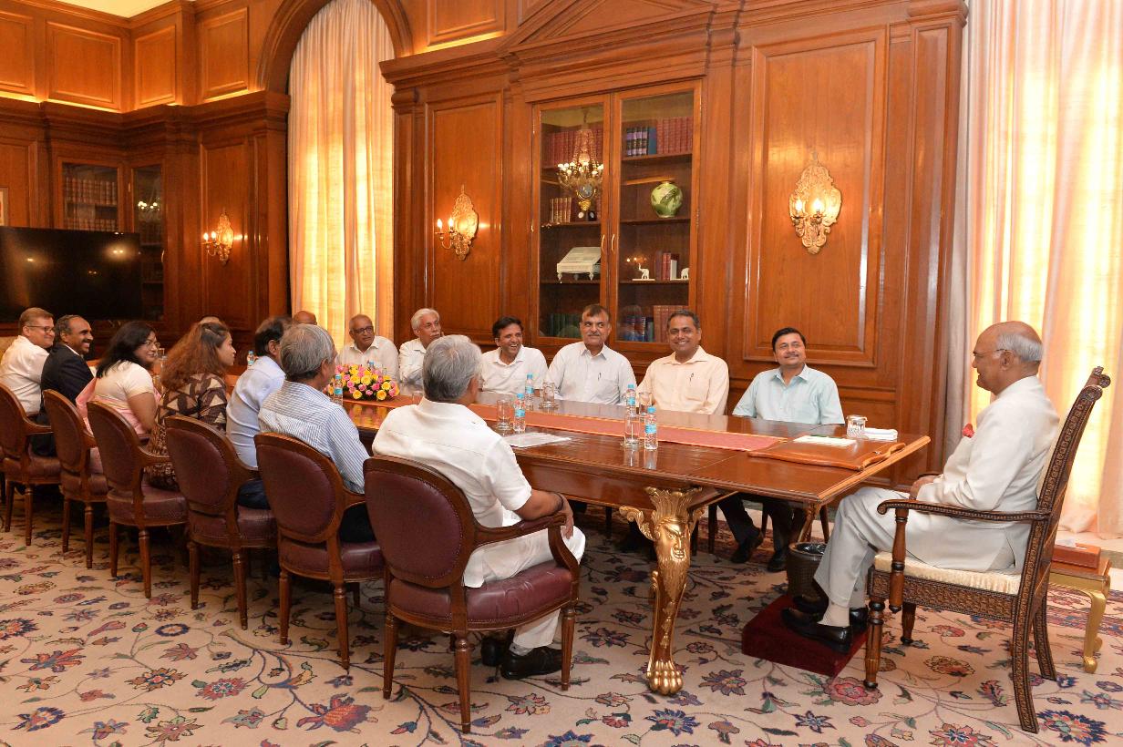| Caption: | Dr. Neeraj Kumar Sharma, Chairman along with the Vice Chairman & Directors of the Board, Supreme Court Bar Association Multi-State Cooperative Group Housing Society Ltd. meeting with the President of India, Shri Ram Nath Kovind, at Rashtrapati Bhavan on June 01, 2018. |