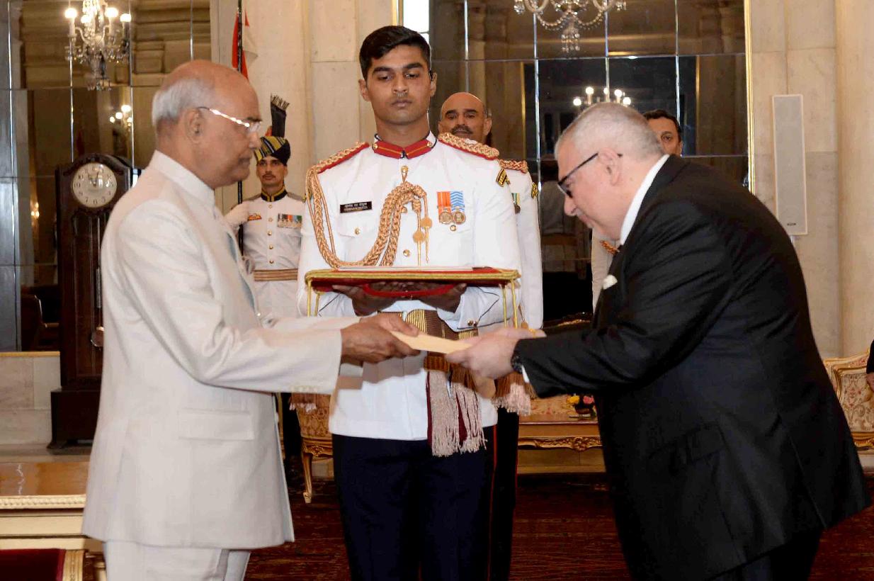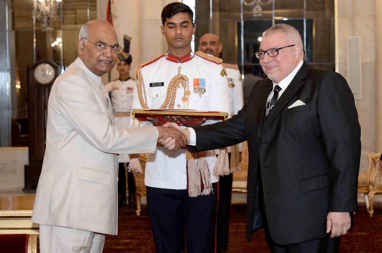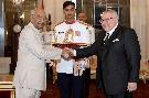 | Caption: | The High Commissioner-designate of the Republic of Cyprus, H.E. Mr. Agis Loizou presenting his credentials to the President of India, Shri Ram Nath Kovind, at Rashtrapati Bhavan on May 31, 2018. |