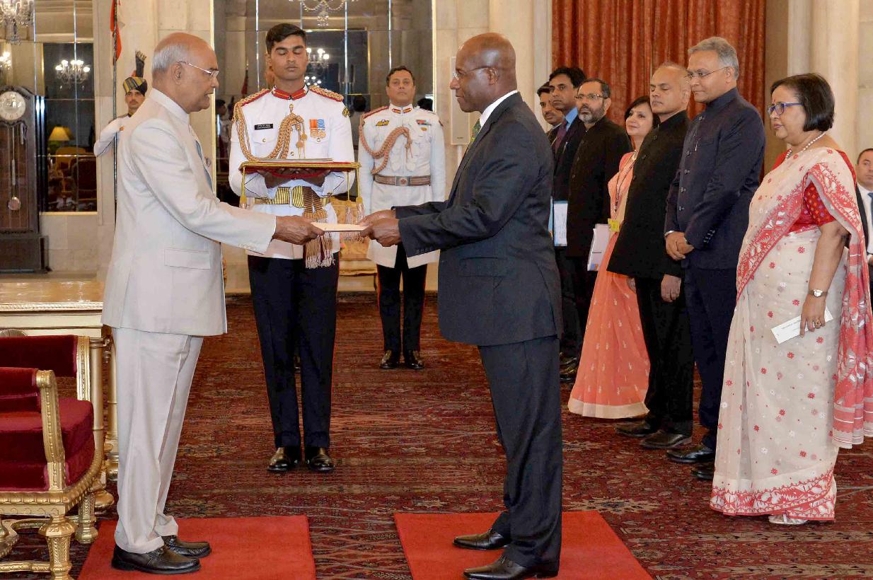 | Caption: | The High Commissioner-designate of Jamaica, H.E. Mr. Aubyn Hill presenting his credentials to the President of India, Shri Ram Nath Kovind, at Rashtrapati Bhavan on May 31, 2018. |