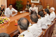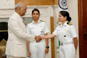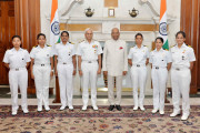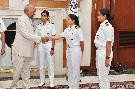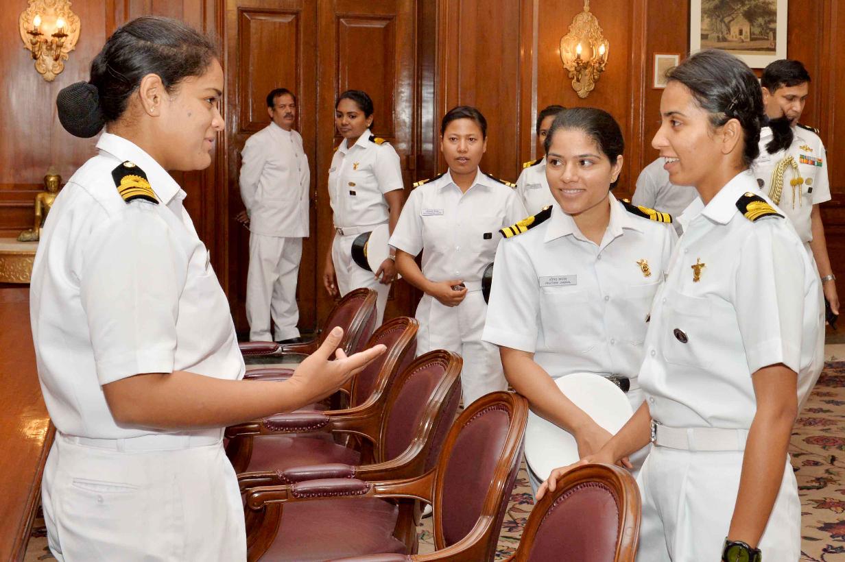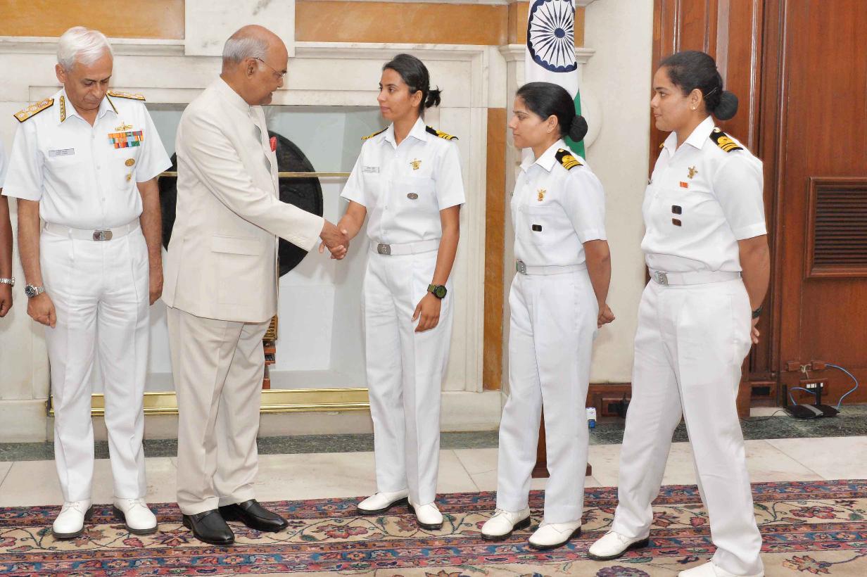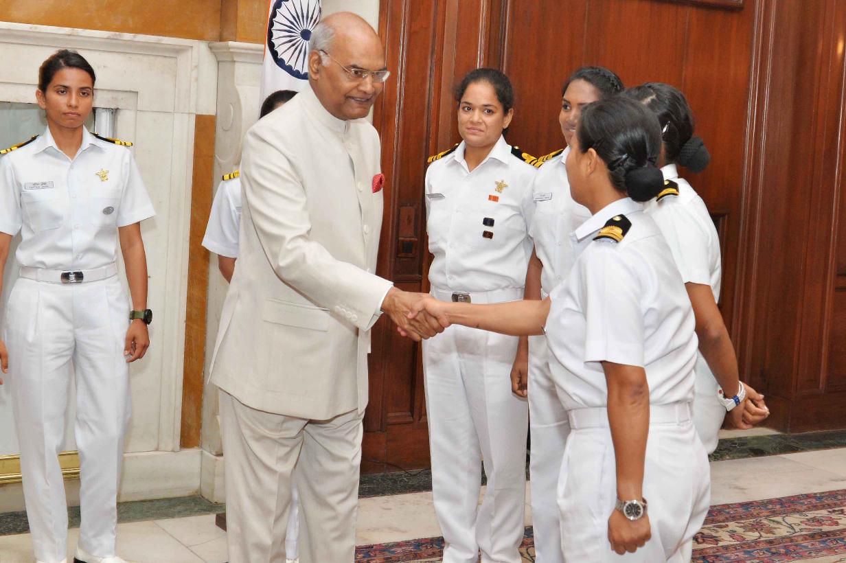 | Caption: | The President of India, Shri Ram Nath Kovind interacting with the all-women crew of INSV Tarini on completion of their voyage of circumnavigation of the globe, at Rashtrapati Bhavan on June 01, 2018. |