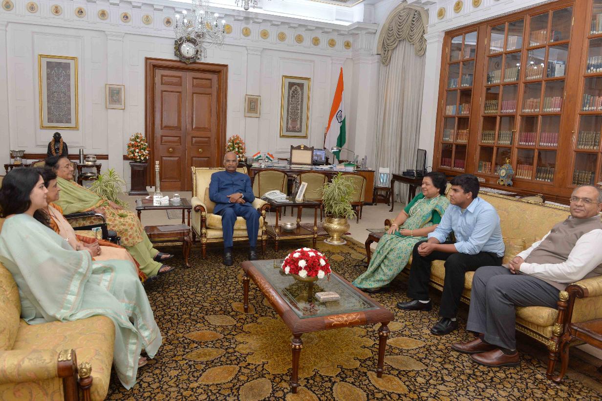 | Caption: | Ms. Justice Gita Mittal, Acting Chief Justice, High Court of Delhi along with her family members meeting with the President of India, Shri Ram Nath Kovind, at Rashtrapati Bhavan on June 06, 2018. |