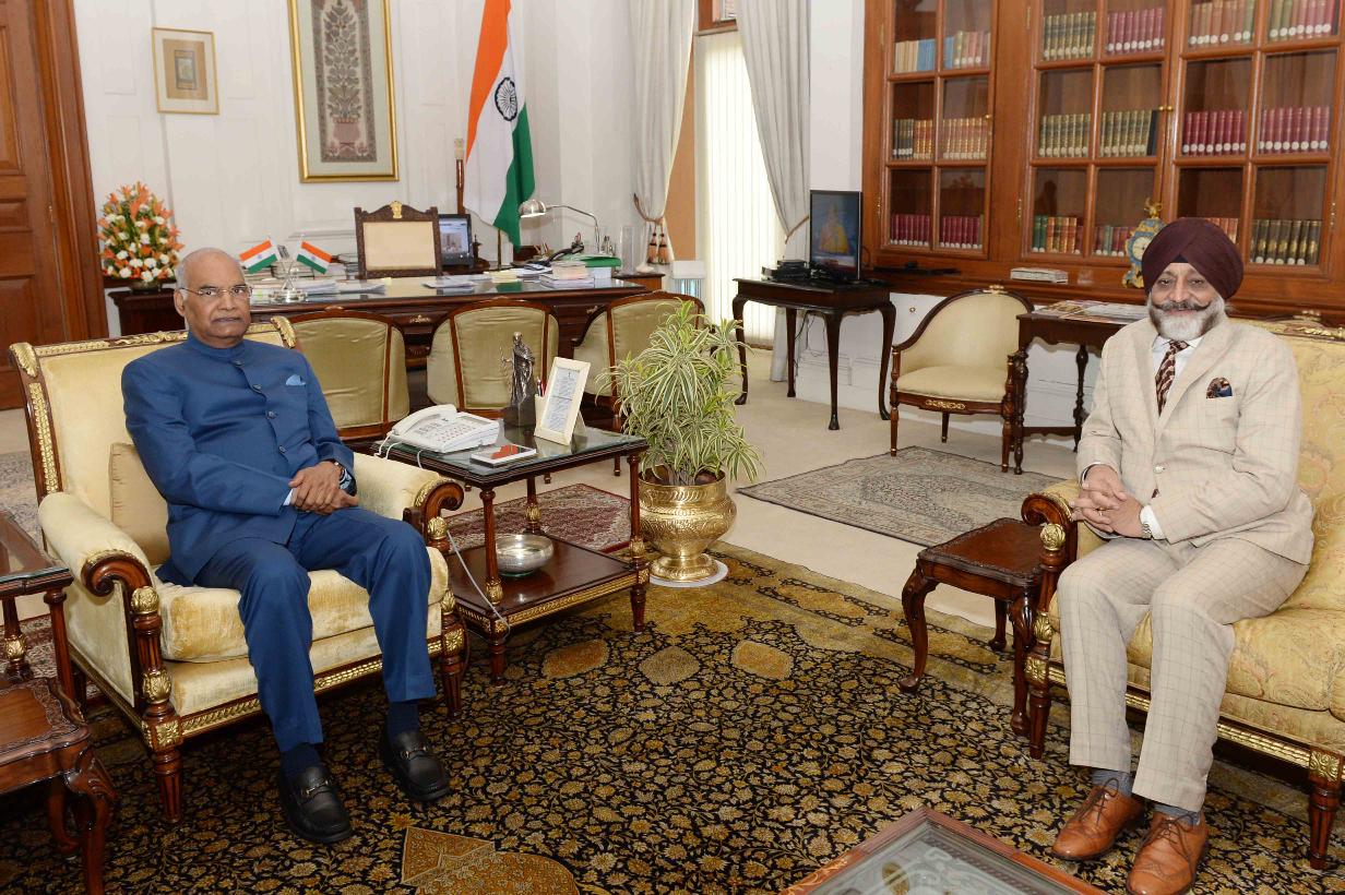 | Caption: | Shri Justice Virender Singh, former Chief Justice, High Court of Jharkhand and presently Chairperson, Armed Forces Tribunal, Principal Bench, New Delhi meeting with the President of India, Shri Ram Nath Kovind, at Rashtrapati Bhavan on June 06, 2018. |