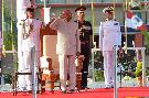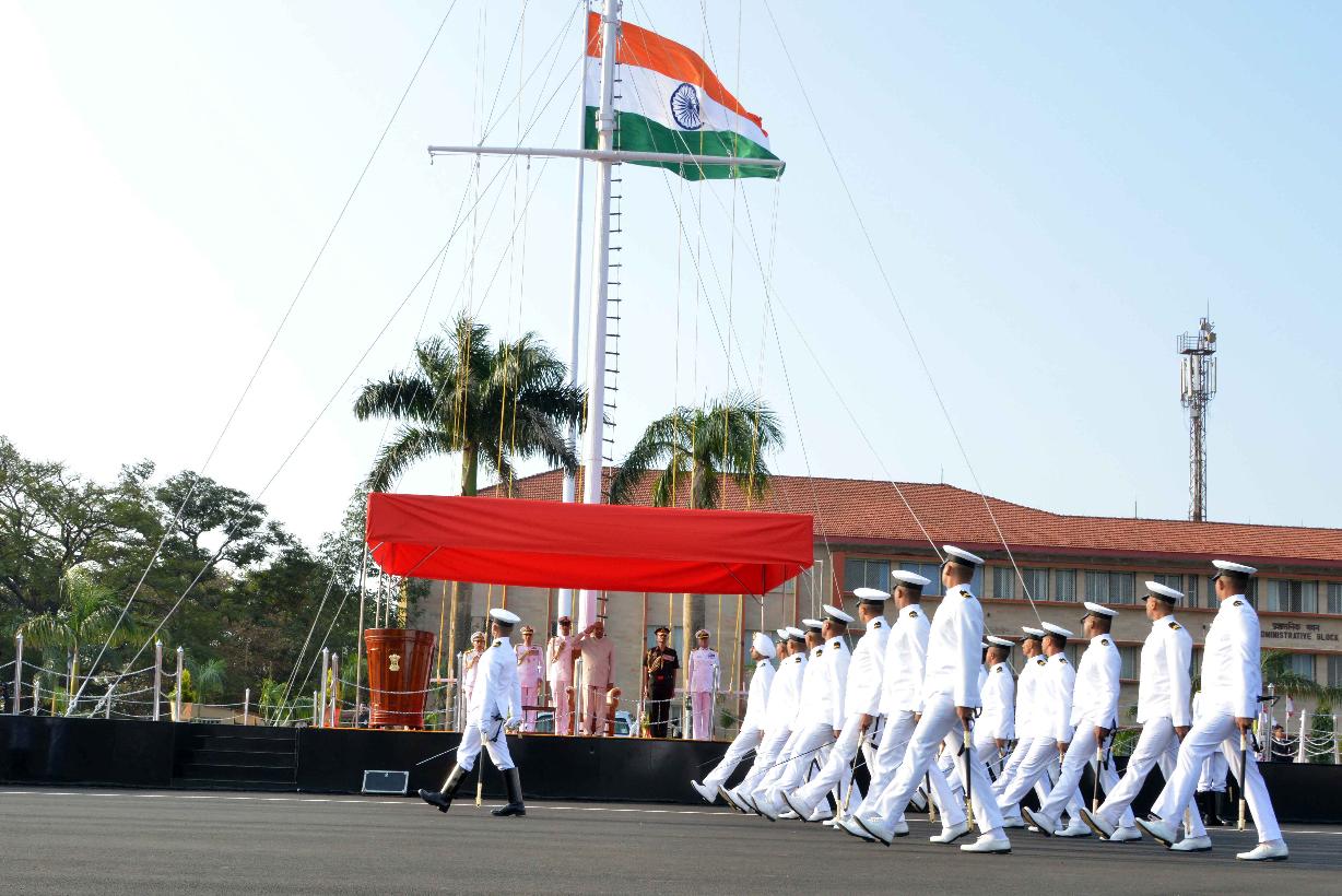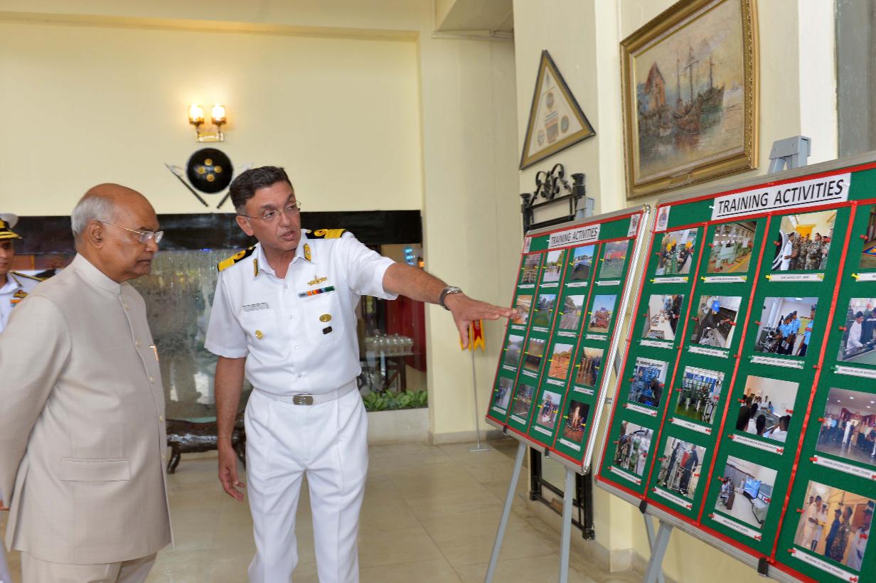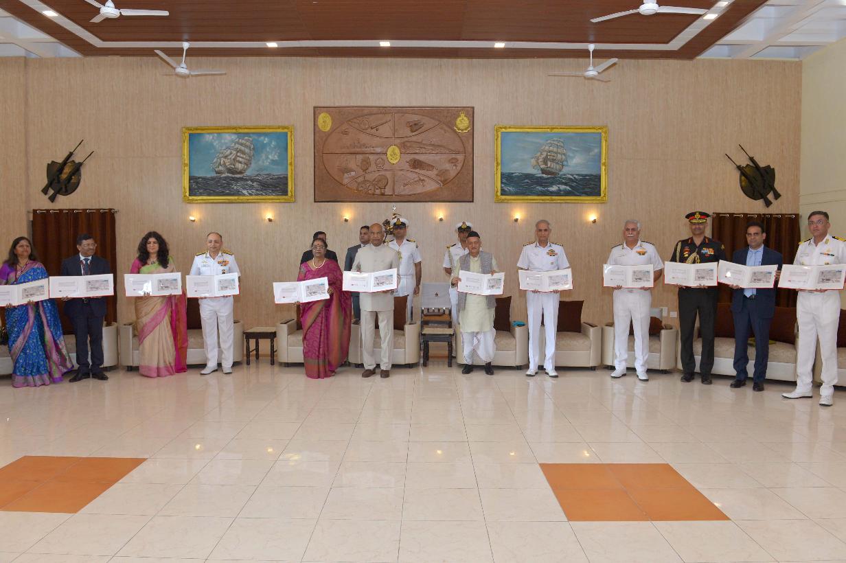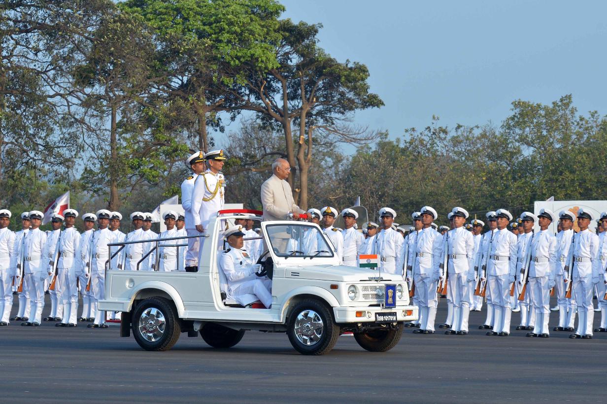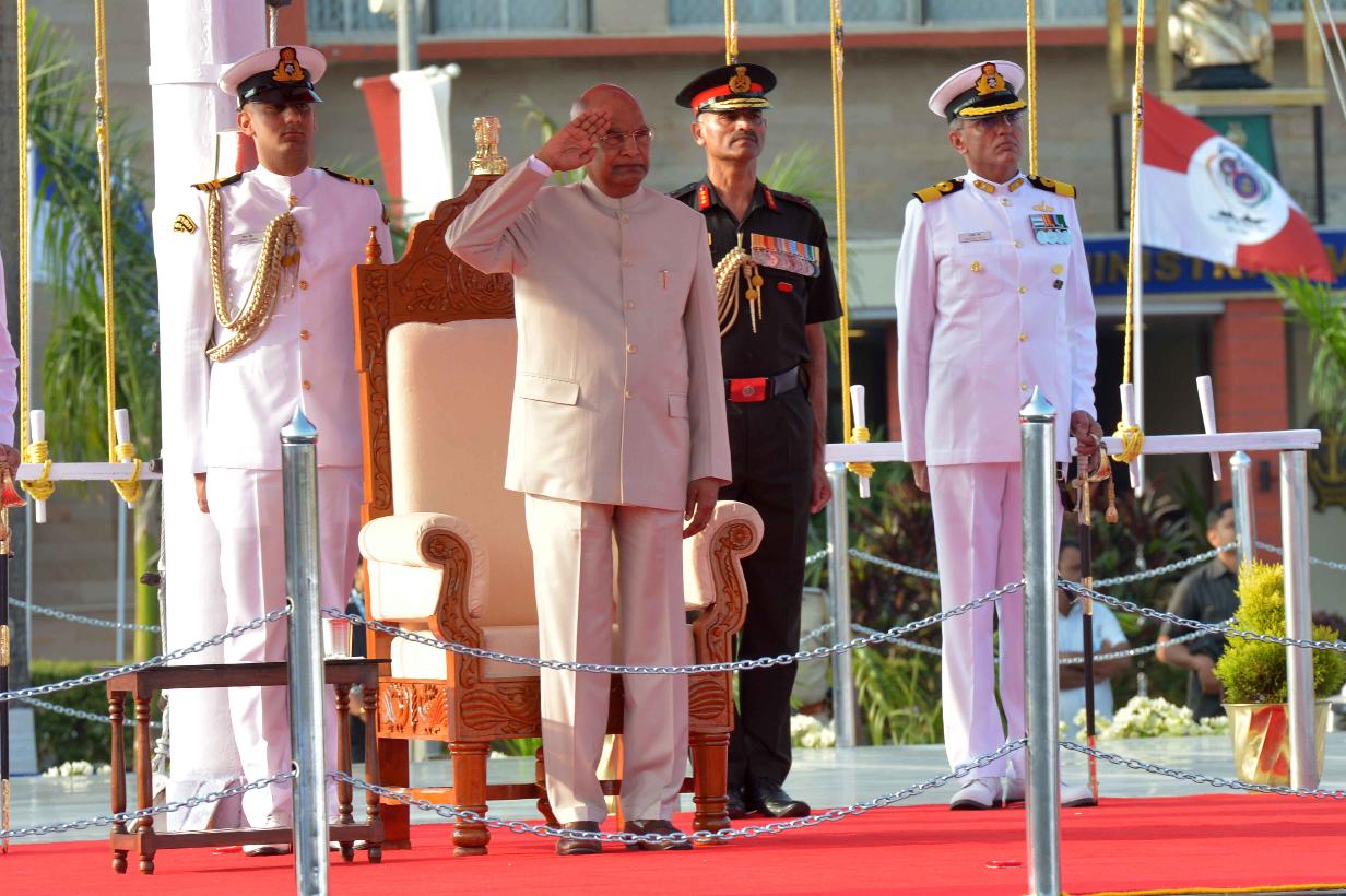 | Caption: | The President of India, Shri Ram Nath Kovind presents colour to INS Shivaji, at Lonavala, in Maharashtra on February 13, 2020. |