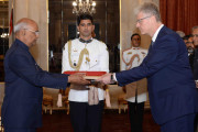 | Caption: | The Ambassador-designate of the Slovak Republic, H.E. Mr. Ivan Lancaricm presenting his credentials to the President of India, Shri Ram Nath Kovind, at Rashtrapati Bhavan on July 11, 2018. |