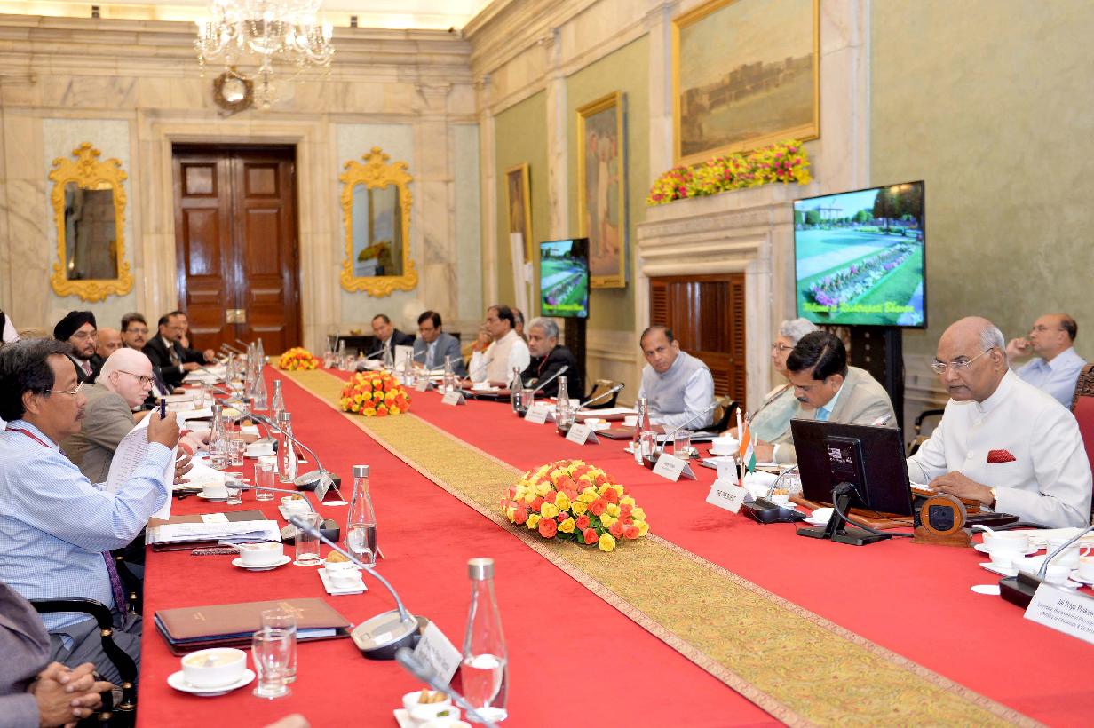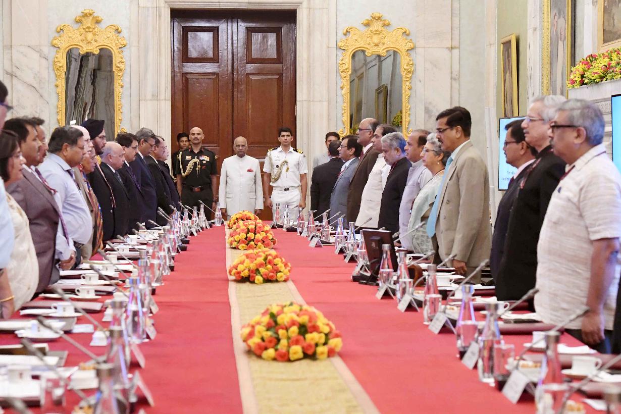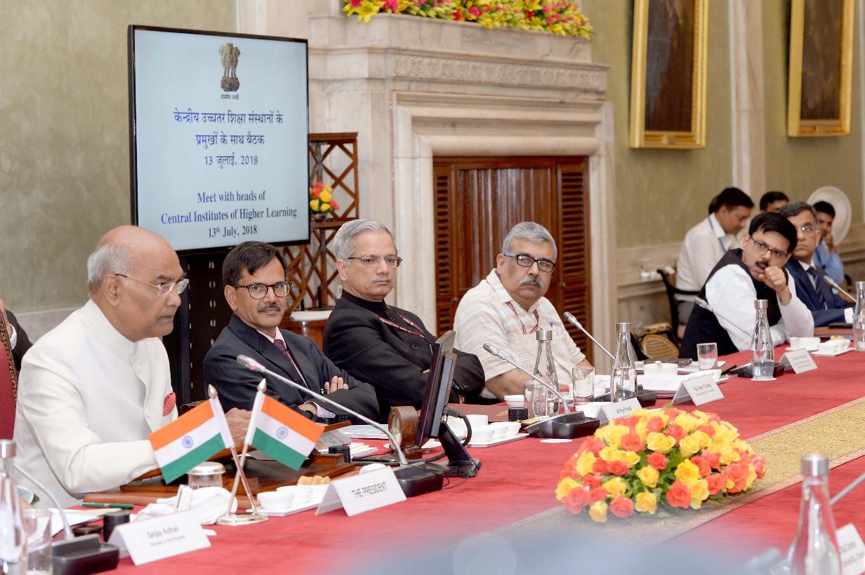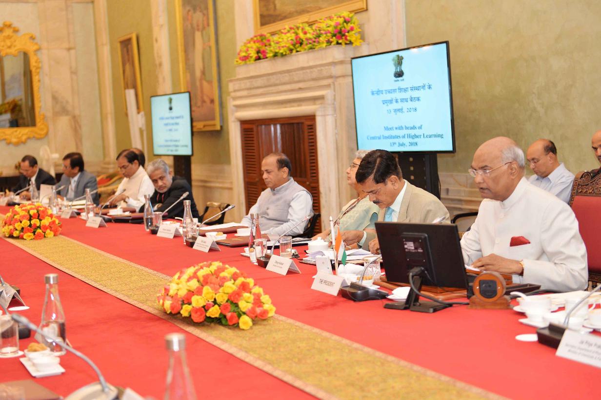 | Caption: | The President of India, Shri Ram Nath Kovind meeting with the Vice-Chancellors, Directors and Heads of 19 Central Institutes of Higher Learning, at Rashtrapati Bhavan on July 13, 2018. |