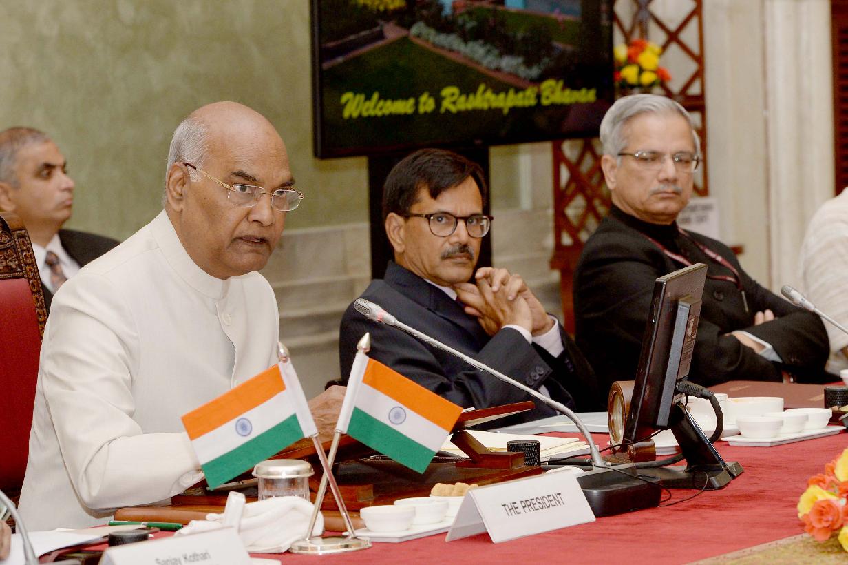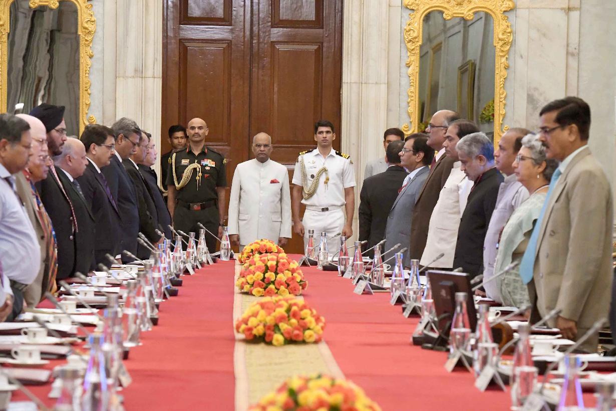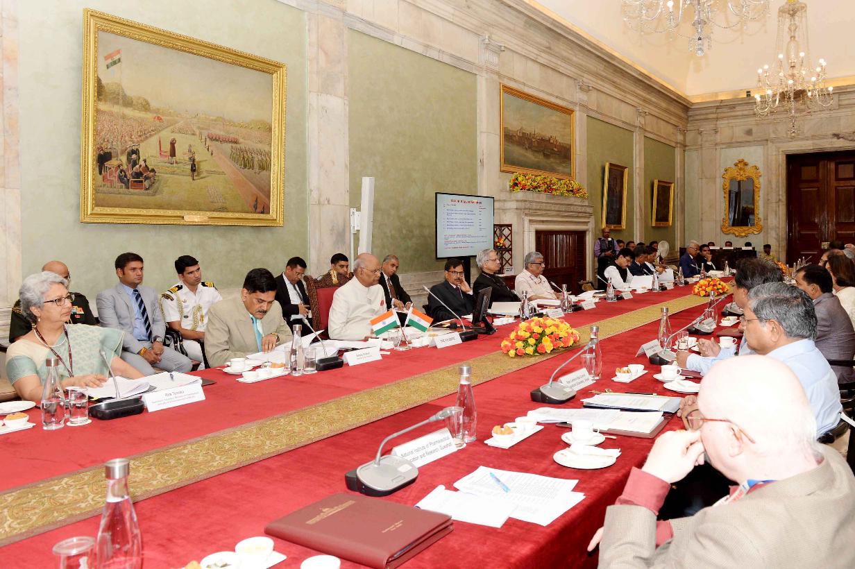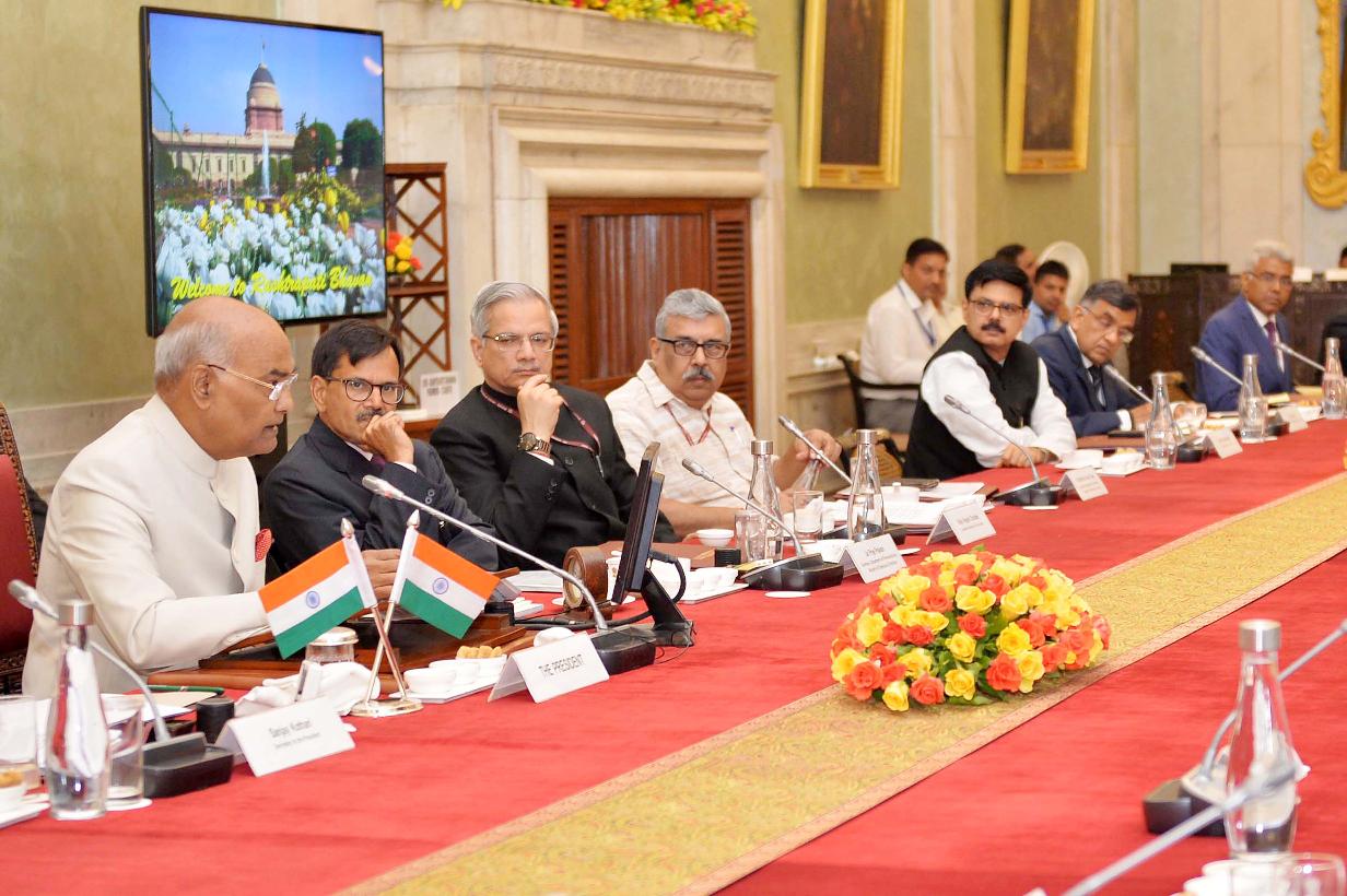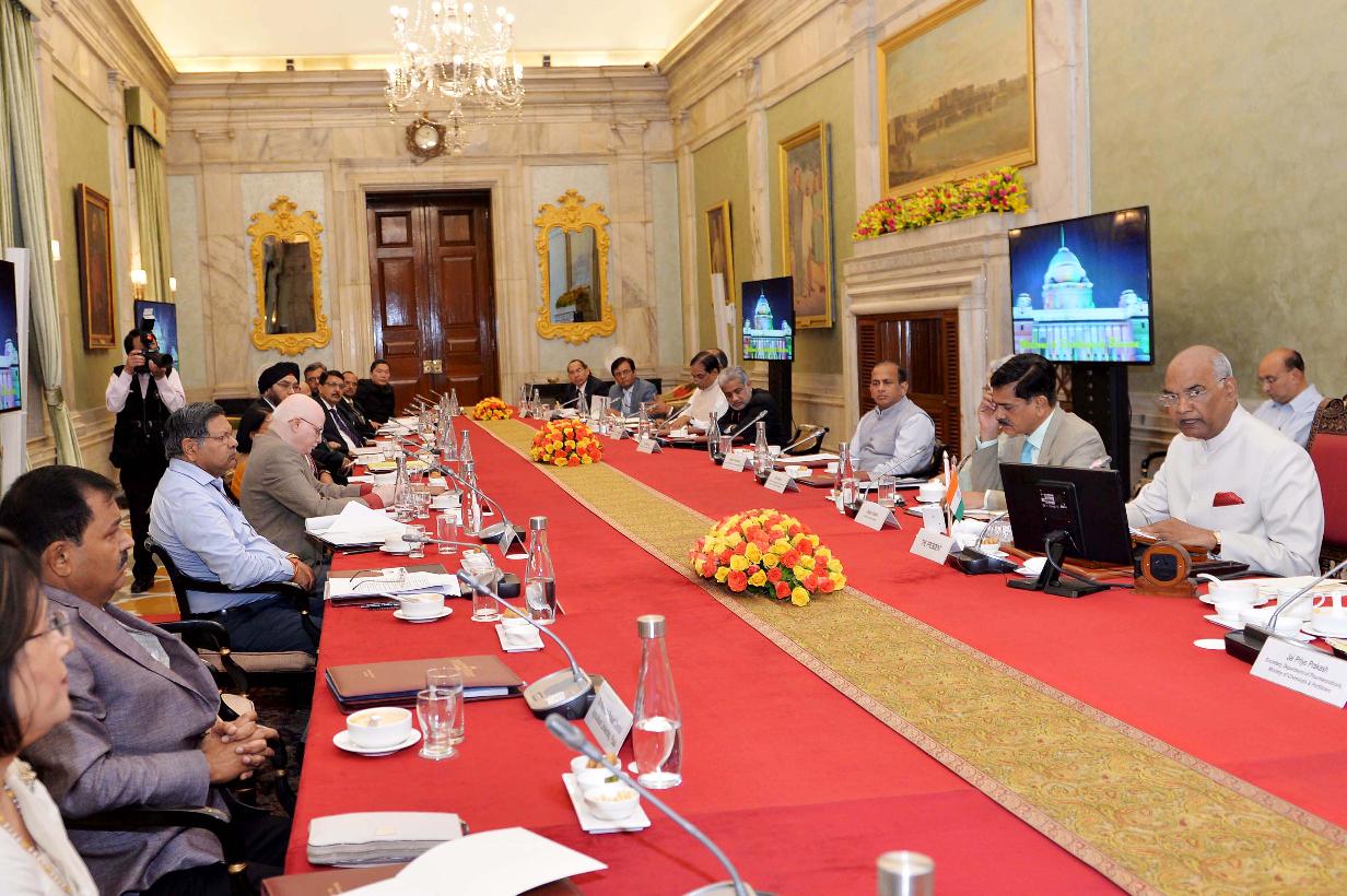| Caption: | The President of India, Shri Ram Nath Kovind meeting with the Vice-Chancellors, Directors and Heads of 19 Central Institutes of Higher Learning, at Rashtrapati Bhavan on July 13, 2018. |