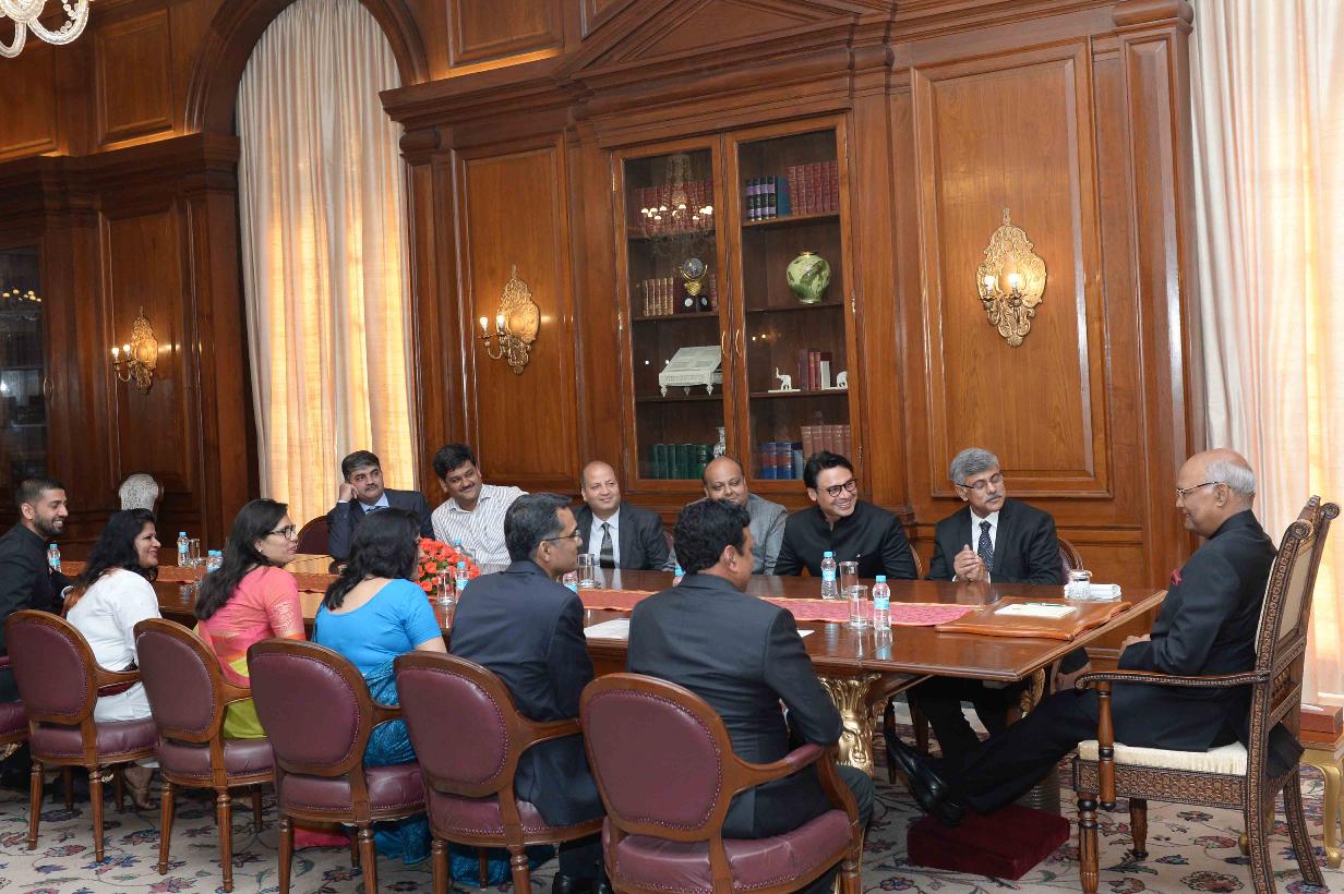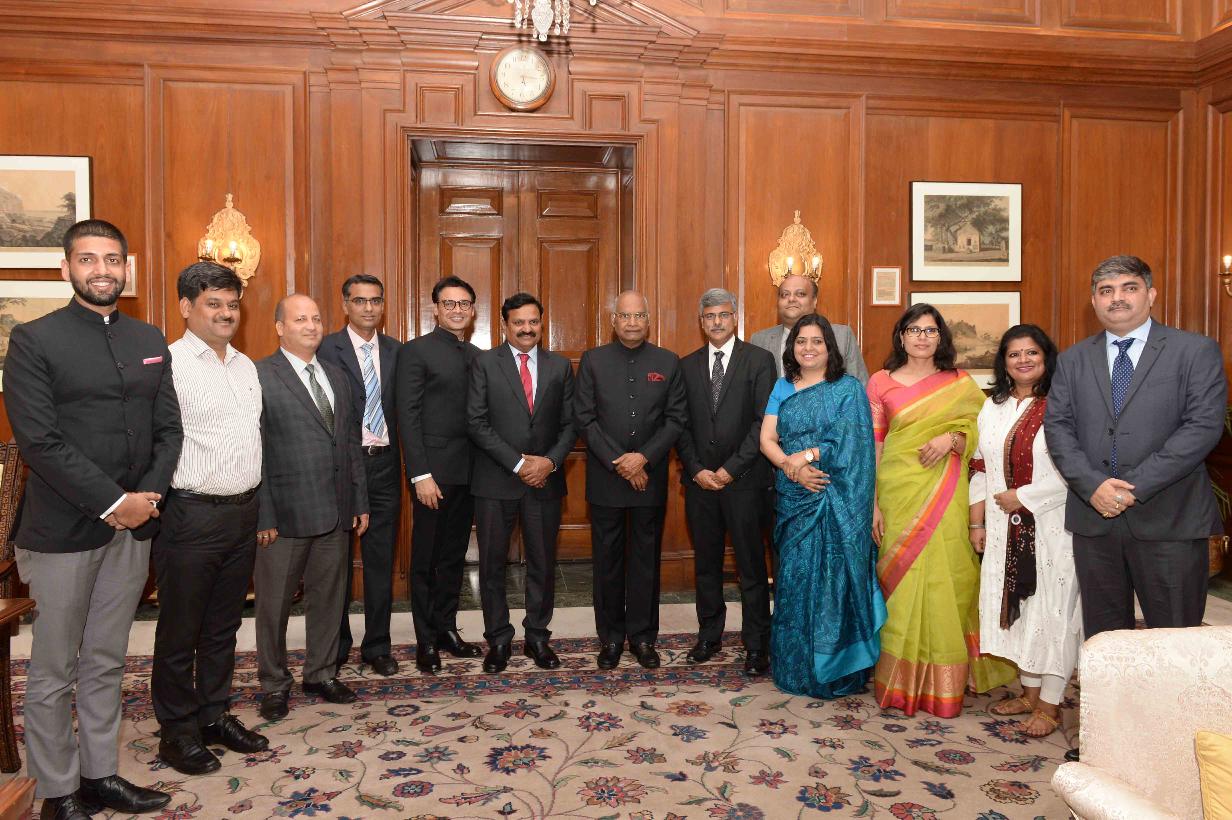 | Caption: | Shri Shivaji M. Jadhav, President along with office bearers of Supreme Court Advocates-on-Record Association, Supreme Court of India meeting with the President of India, Shri Ram Nath Kovind, at Rashtrapati Bhavan on July 05, 2018. |