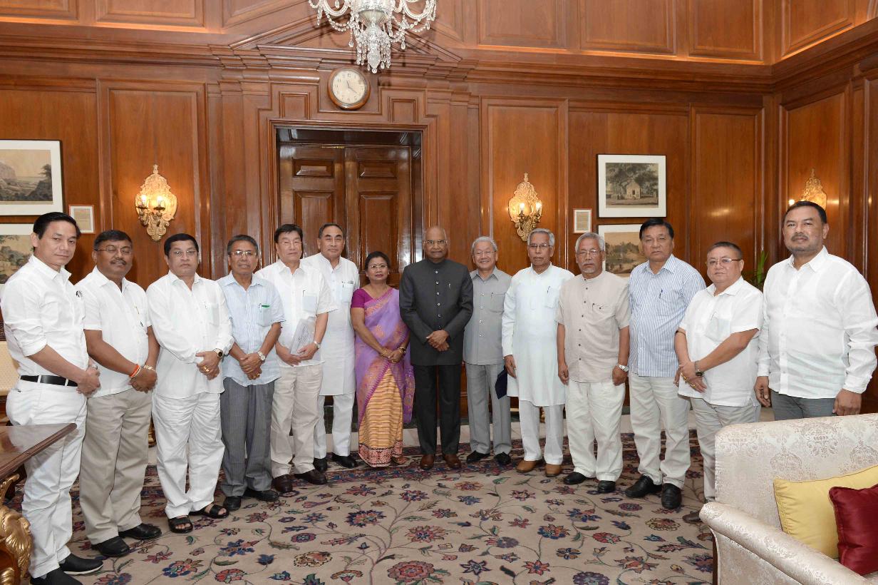 | Caption: | A delegation of Congress MPs, MLAs & Ex-MLAs from Manipur led by Shri Gaikhangam, MLA & former Deputy Chief Minister of Manipur calling on the President of India, Shri Ram Nath Kovind, at Rashtrapati Bhavan on July 03, 2018. |