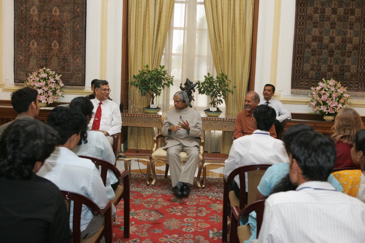 | Caption: | The President of India, Dr A P J Abdul Kalam interacting with a Group of 61 Civil Engineering Students Participating in the Summer Camp being organized by the IIT-Kanpur at the Yellow Drawing Room of Rashtrapati Bhavan in New Delhi on June 20, 2007 |