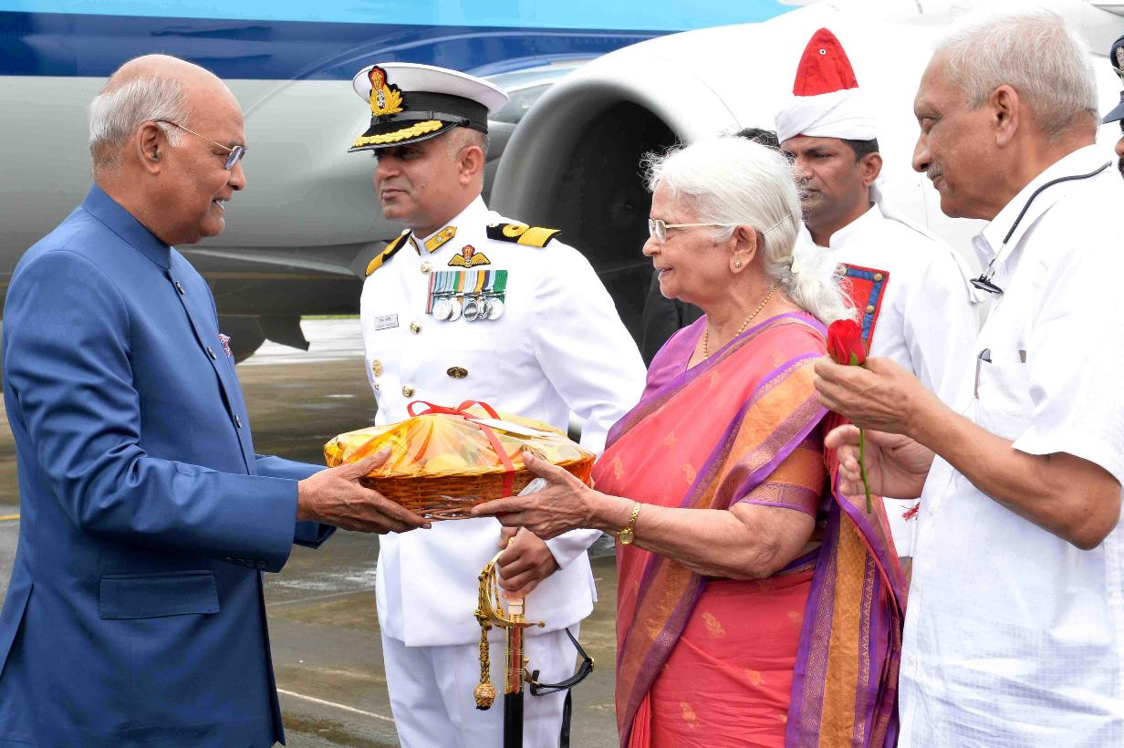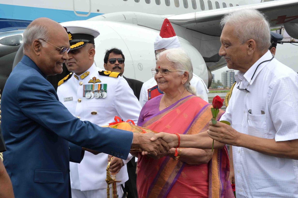 | Caption: | The President of India, Shri Ram Nath Kovind being received by the Governor of Goa, Smt. Mridula Sinha and the Chief Minister of Goa, Shri Manohar Parrikar, at Dabolim airport, in Goa on July 07, 2018. |