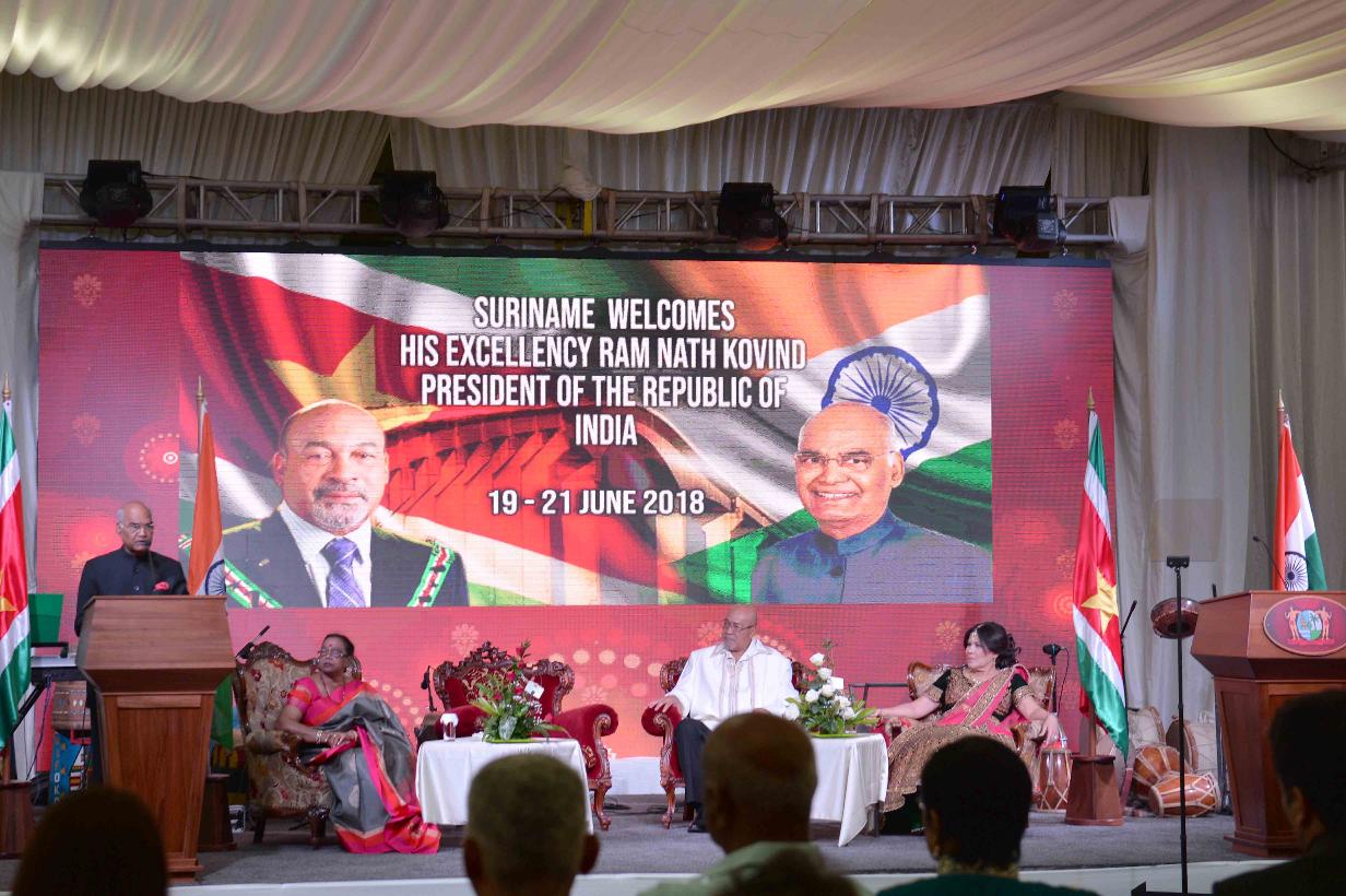 | Caption: | The President of India, Shri Ram Nath Kovind addressing at the Suriname Chamber of Commerce and Industry, at Paramaribo, in Suriname on June 20, 2018. |