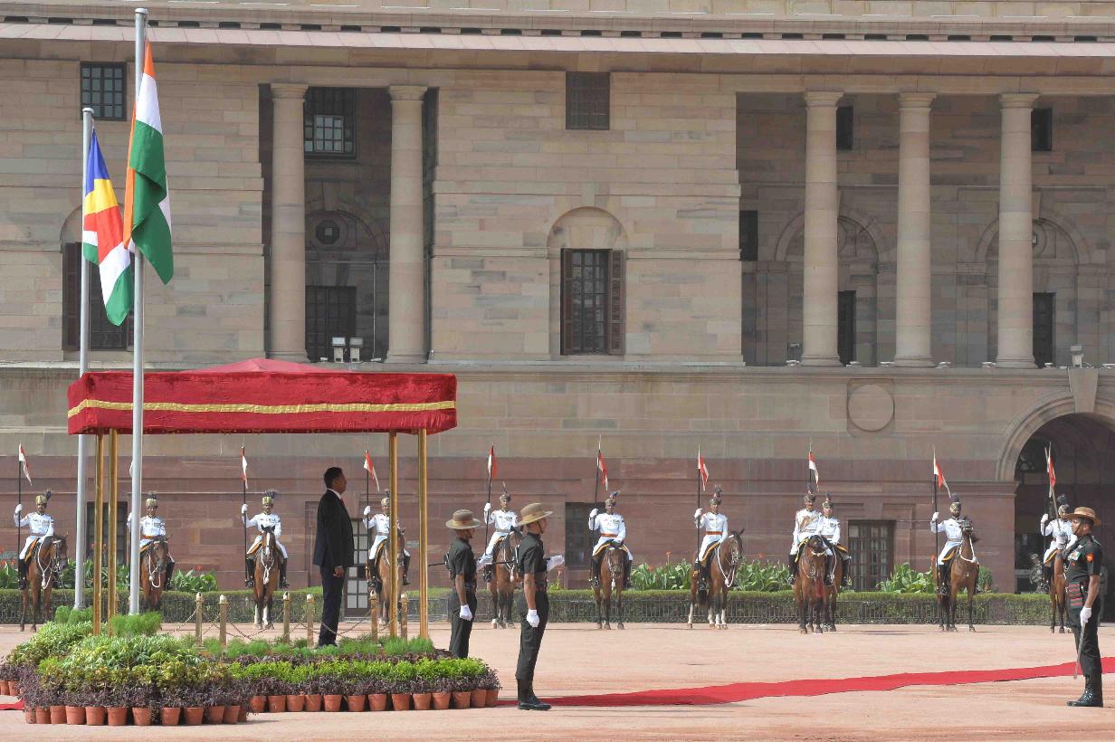 | Caption: | The President of India, Shri Ram Nath Kovind receives the President of the Republic of Seychelles, H.E. Mr. Danny Antoine Rollen Faure, at the ceremonial reception, at Rashtrapati Bhavan on June 25, 2018. |