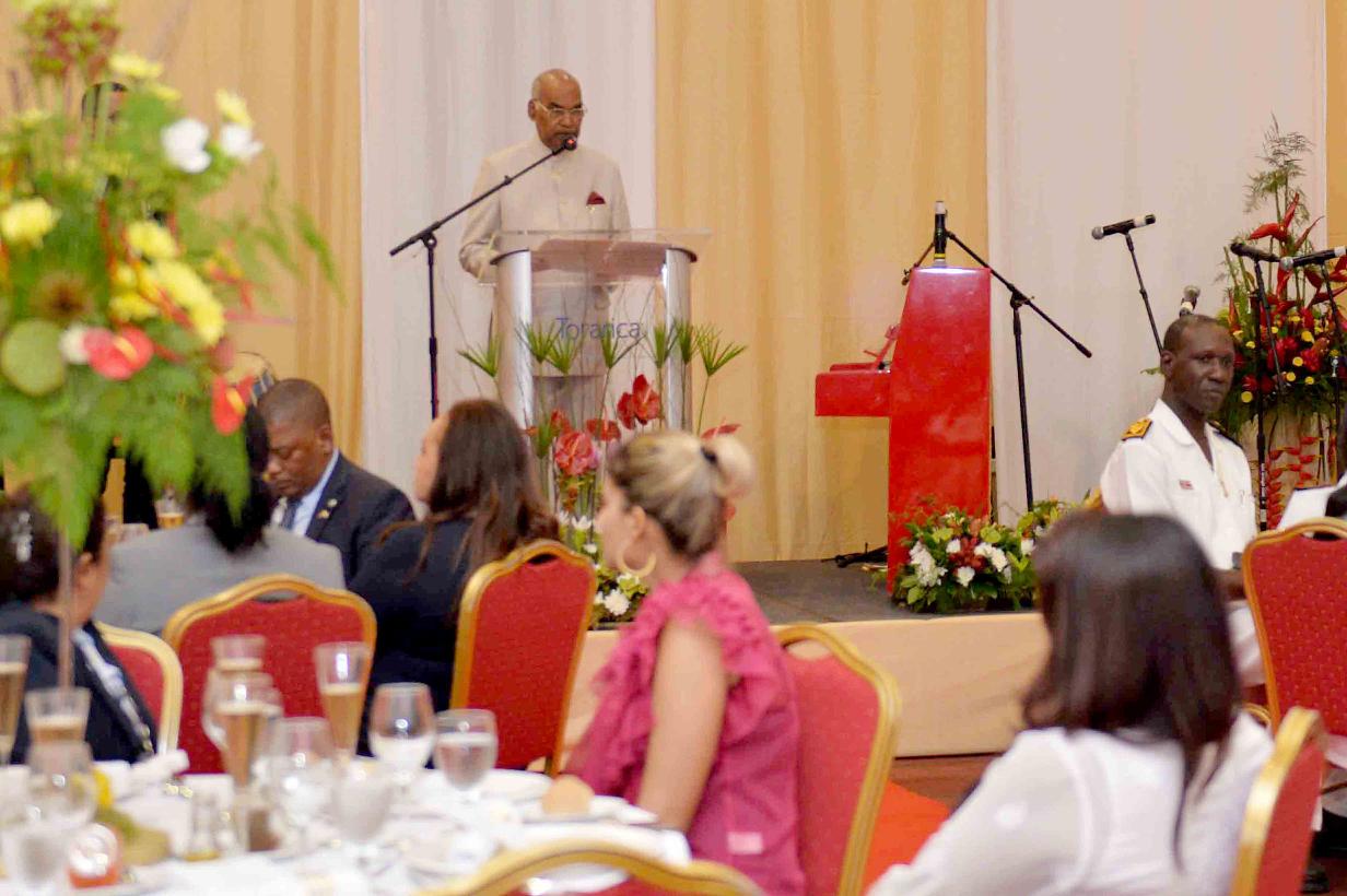 | Caption: | The President of India, Shri Ram Nath Kovind attending a Banquet hosted by the President of the Republic of Suriname, H.E. Mr. Desire Delano Bouterse, at Presidential Palace, in Suriname on June 20, 2018. |